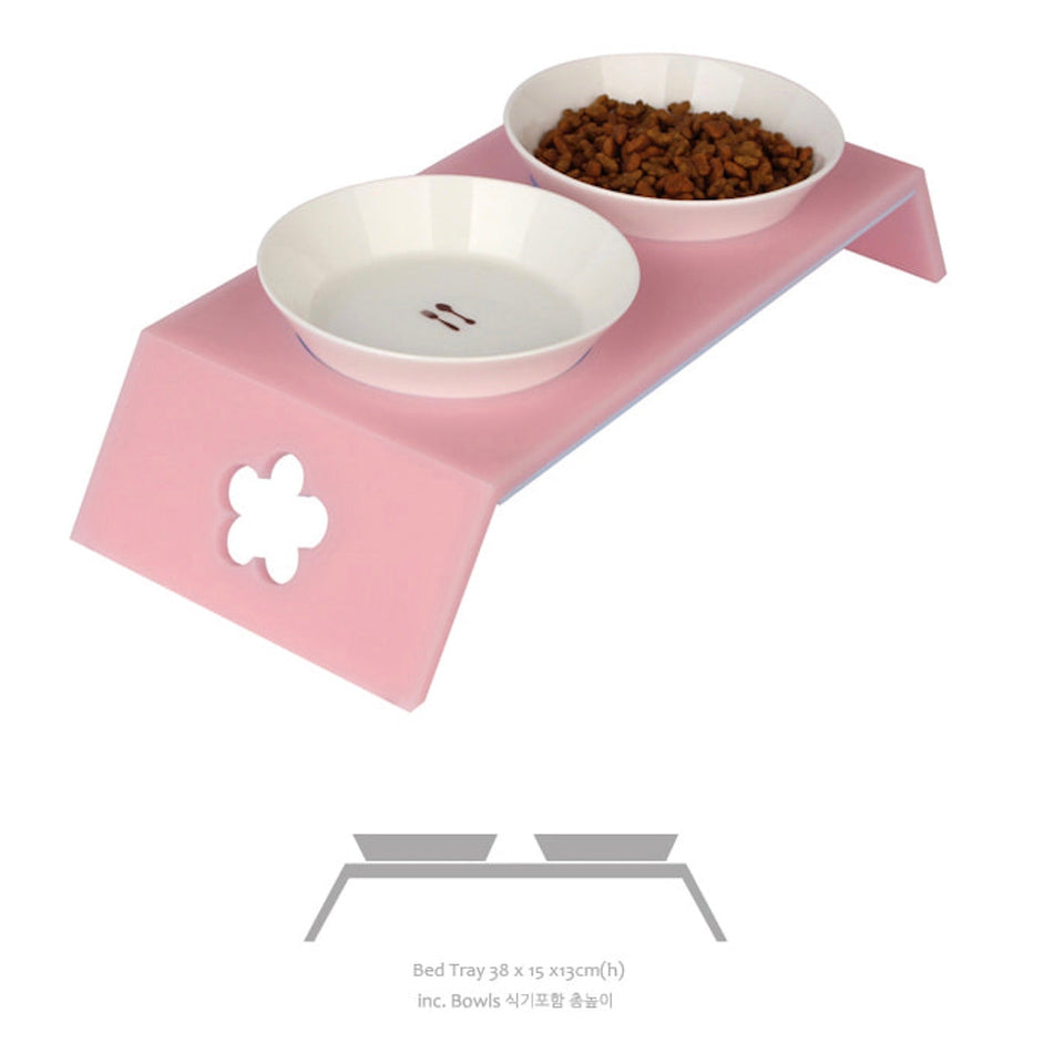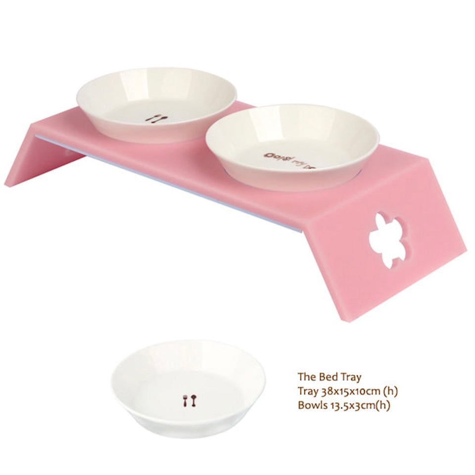 “ベッドトレイ”からインスピレーションを受けて誕生したBed Tray Pinkは"OOPS! MY DOG"が独自開発した丈夫な素材のフードスタンドと高級ボーンチャイナ素材の食器2点のセット
