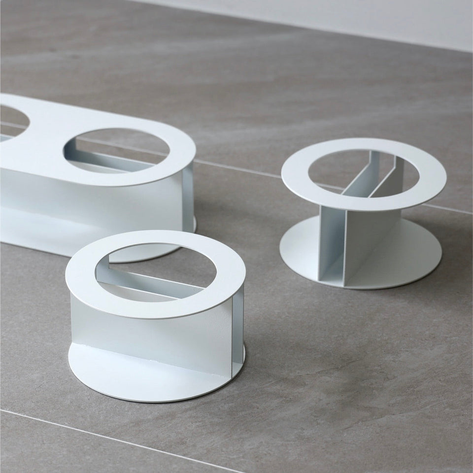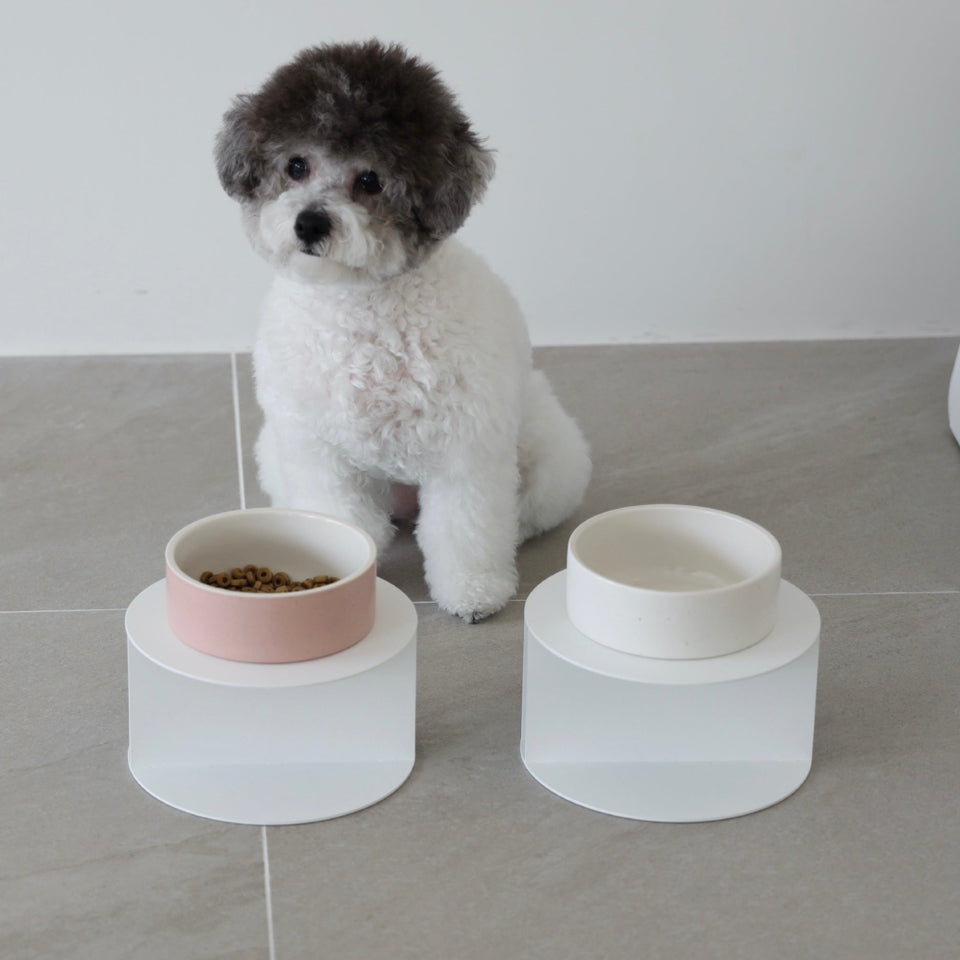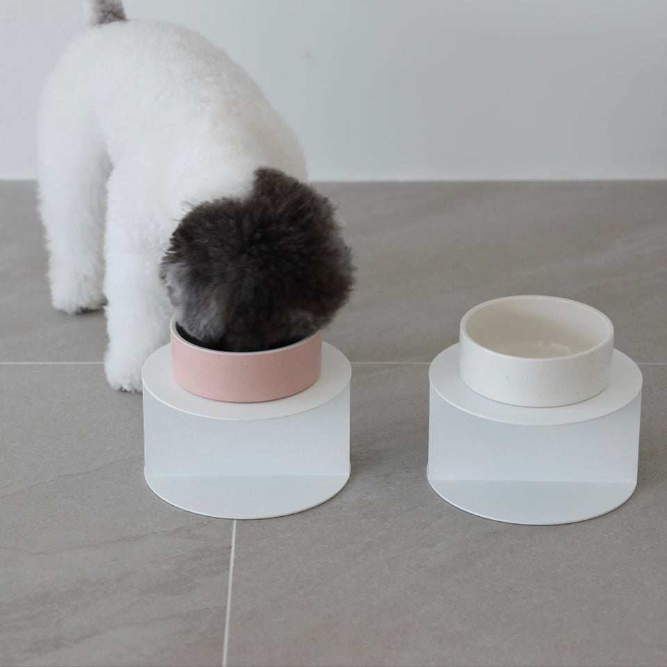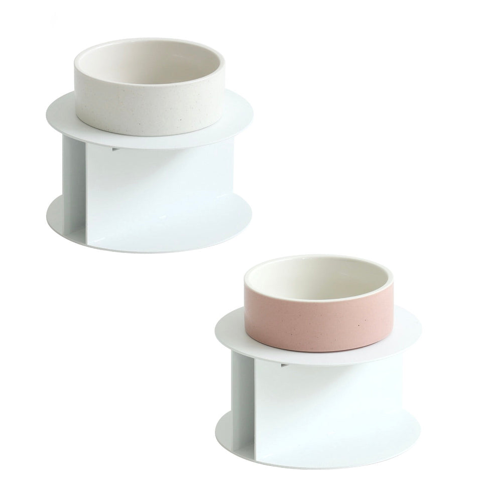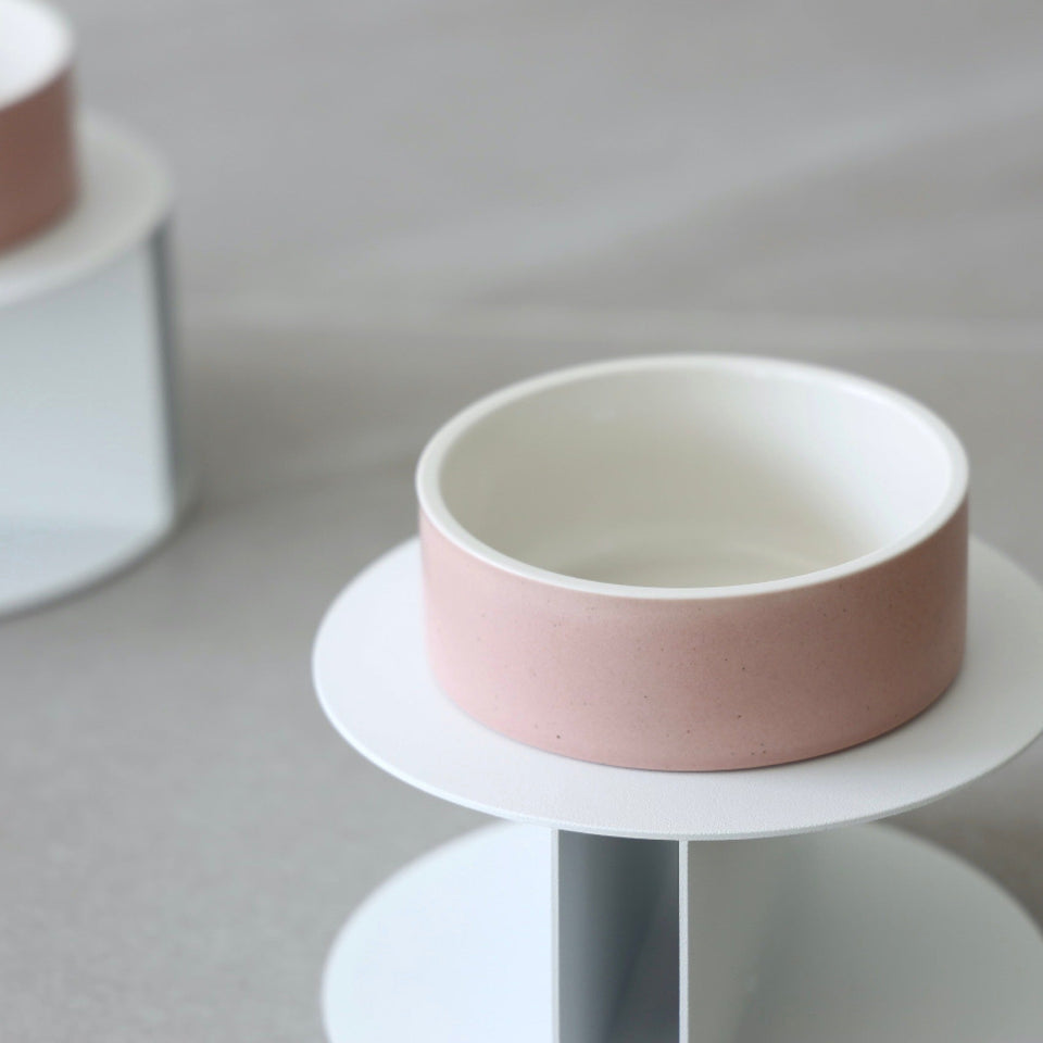 ステンレススチールの土台とセラミックボウルのセットで、セラミックボウルは「ホワイト」と「ピンク」からお選びいただけます!