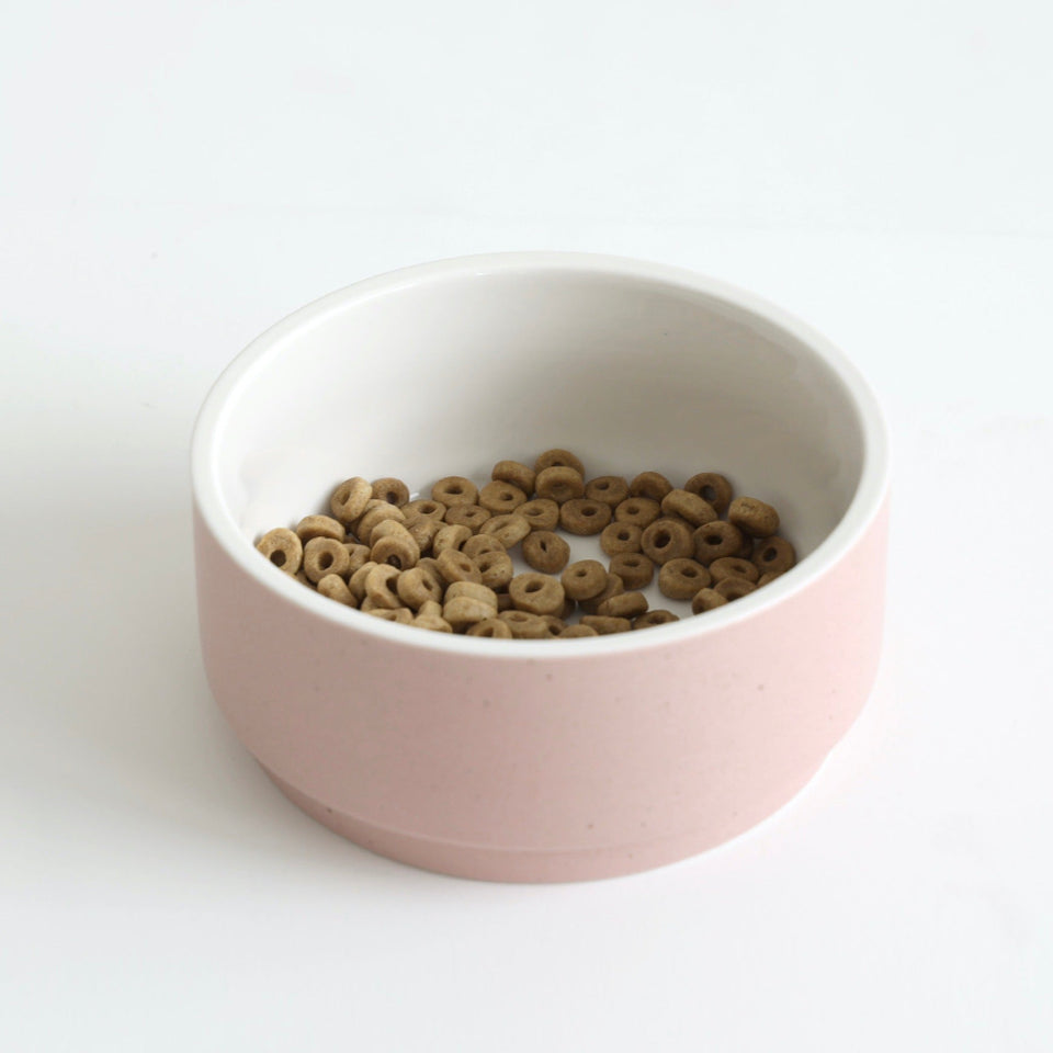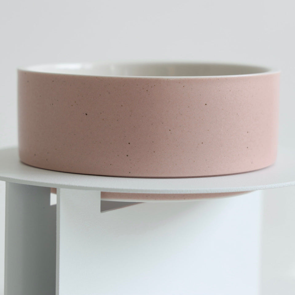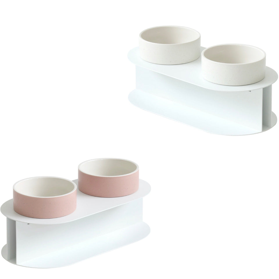 ステンレススチールの土台とセラミックボウルのセットで、セラミックボウルは「ホワイト」と「ピンク」からお選びいただけます!