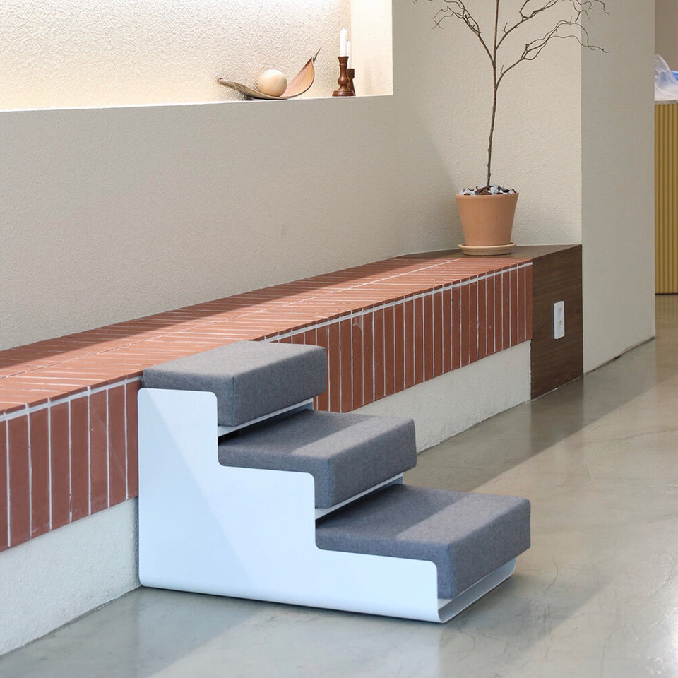クッションブロックの内側にスチールフレームが構成され、愛犬が階段を上下するときに金属部分が足に触れないように設計されているのでとても安全です!