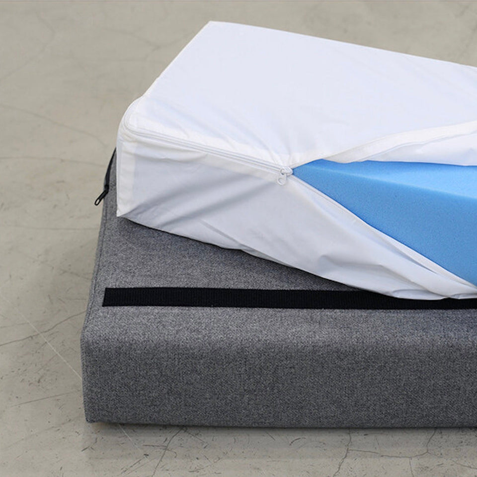 内側の高弾性フォームにおしっこなどの汚染物質が浸透しないように全体に防水カバーをかぶせているので、クッションブロックの外カバーのみを取り外して洗濯することで衛生的かつ簡単に洗濯可能です!