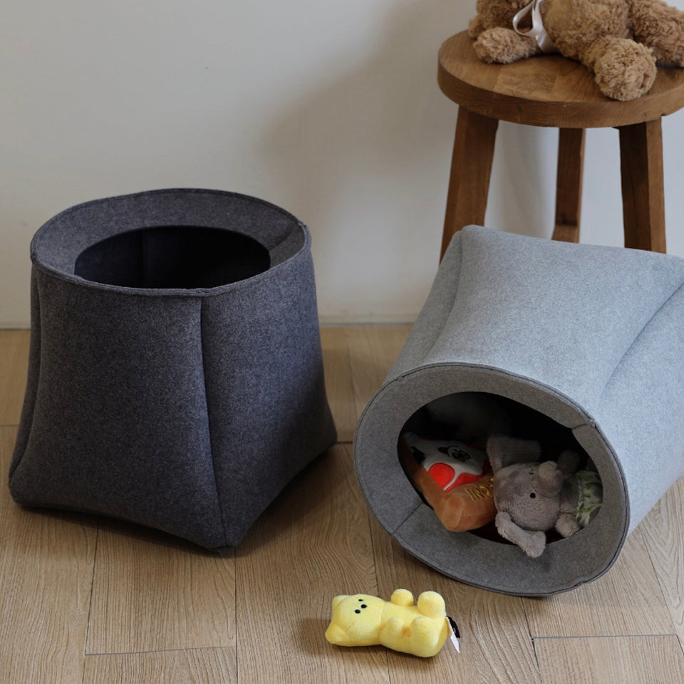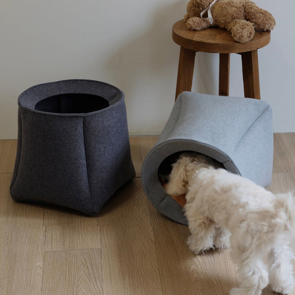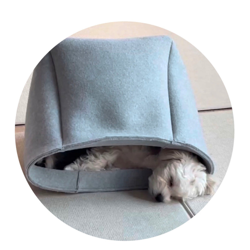 バスケットはとても手触りの良い生地なので、ペットがとても安心して中で寝てしまうほど♡