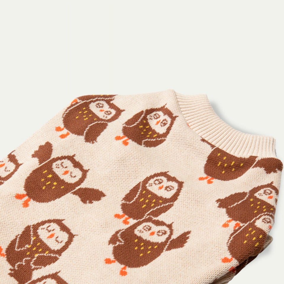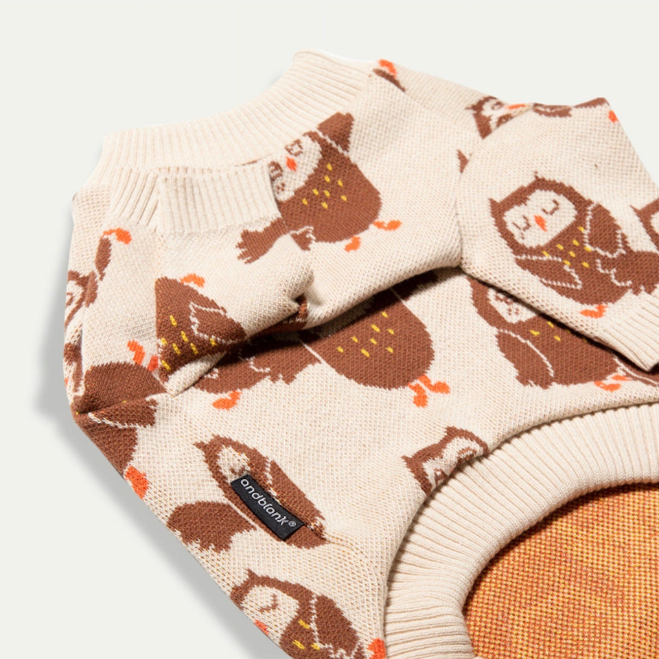 POPなアイコンと独自のデザインセンスで高品質な商品が大人気な韓国ブランド"andblank"のアイボリーのボディにふくろうのイラストが可愛いニットです。