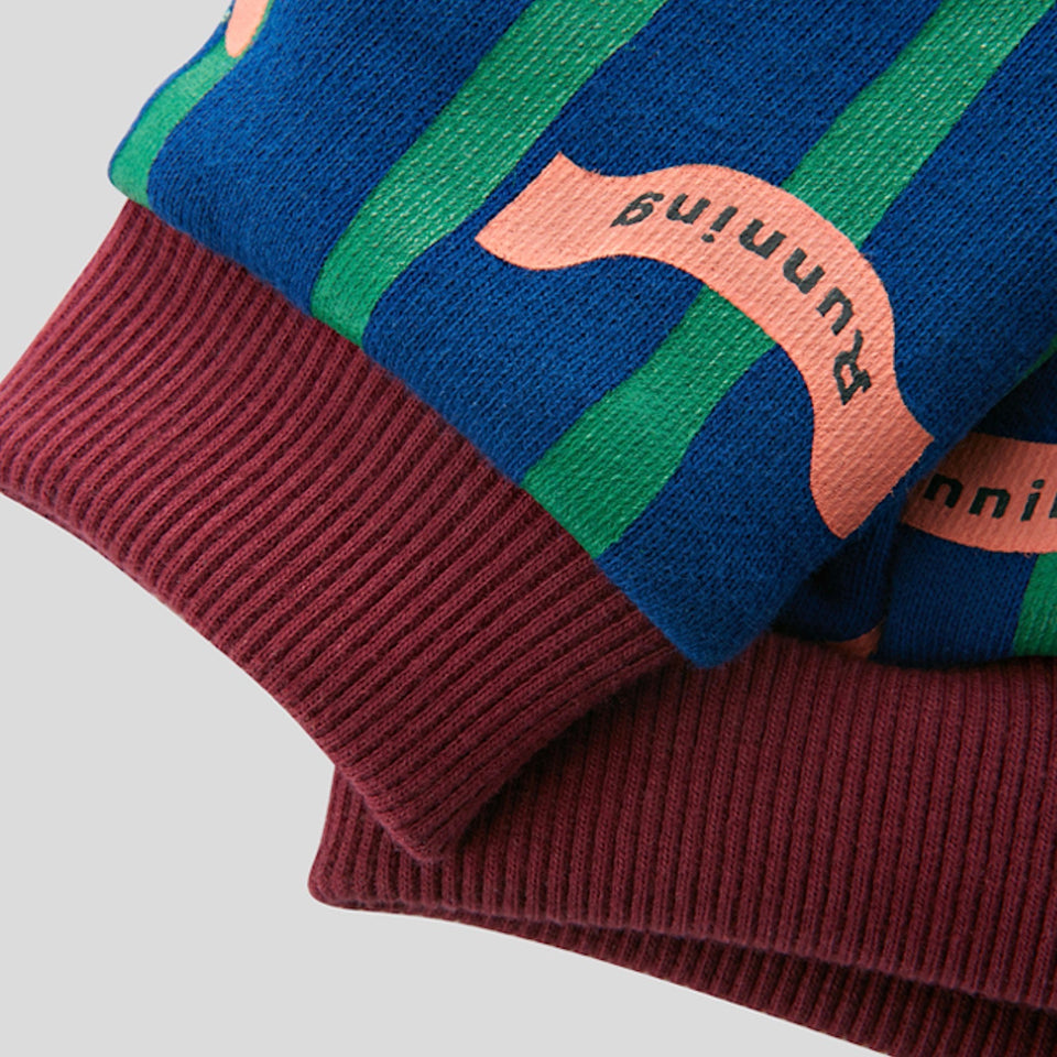 POPなアイコンと独自のデザインセンスで高品質な商品が大人気な韓国ブランド"andblank"のポップなストライプ柄のクロップ丈スウェットTシャツです。