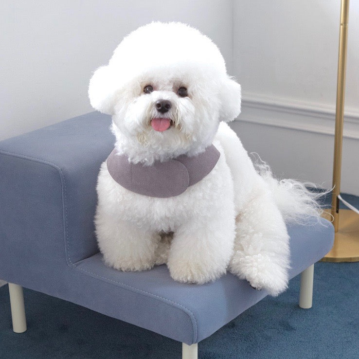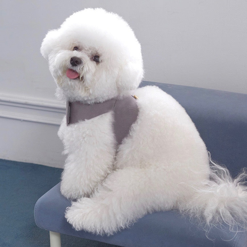 ラウンドパターンで愛犬それぞれの体の屈曲に合わせてフィットする着用感と胸に巻くため、首に負担をかけないデザイン。
