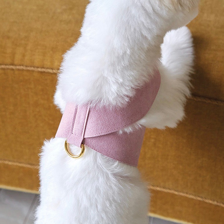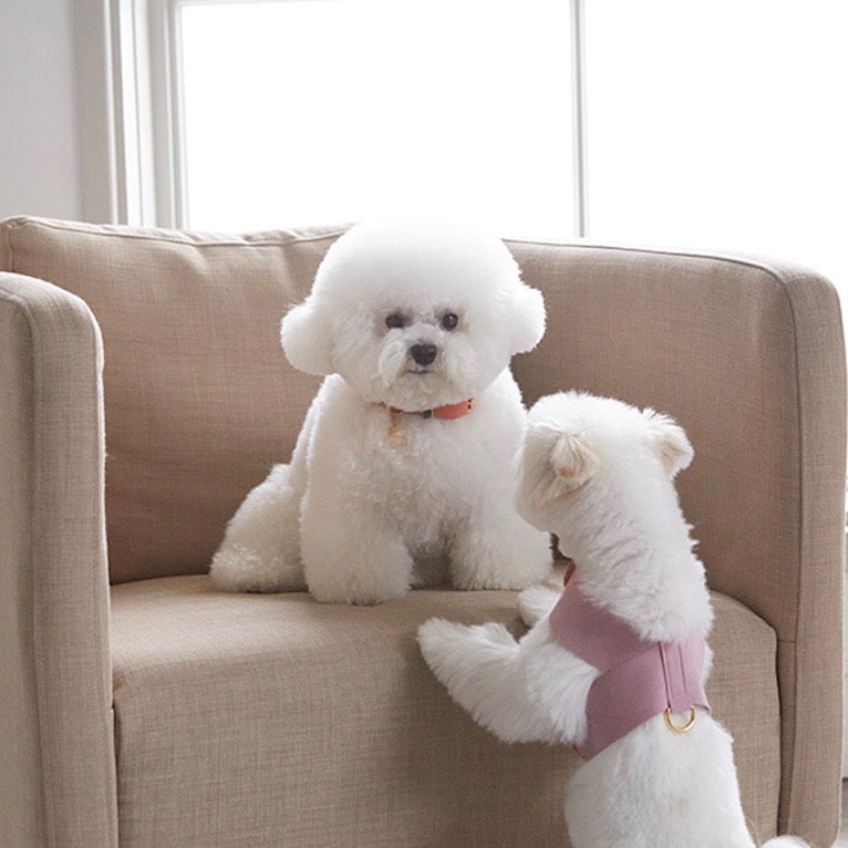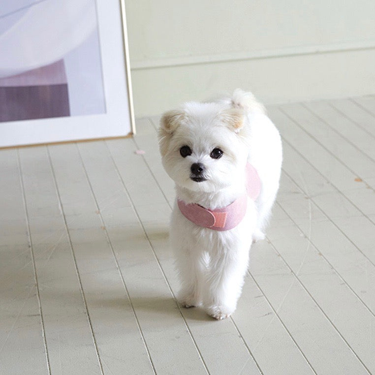 ラウンドパターンで愛犬それぞれの体の屈曲に合わせてフィットする着用感と胸に巻くため、首に負担をかけないデザイン。