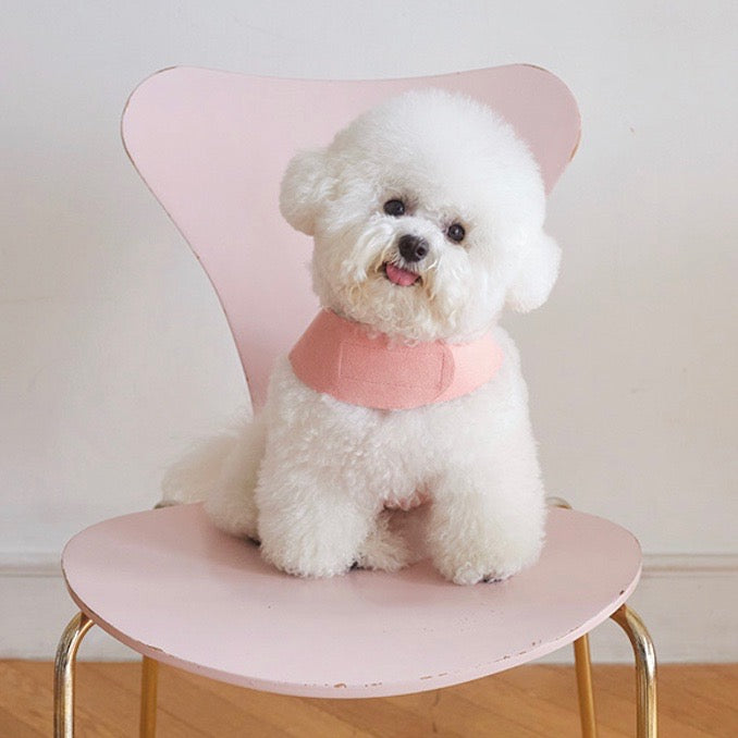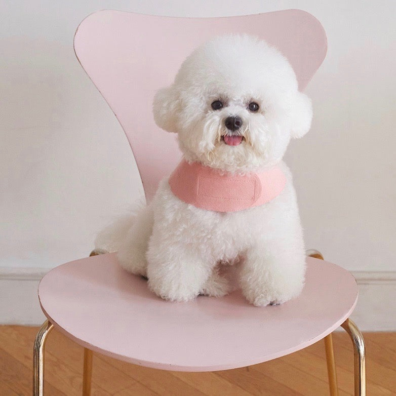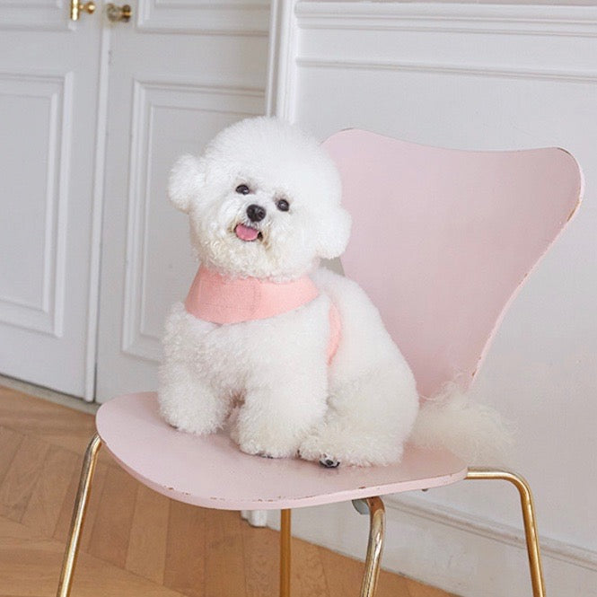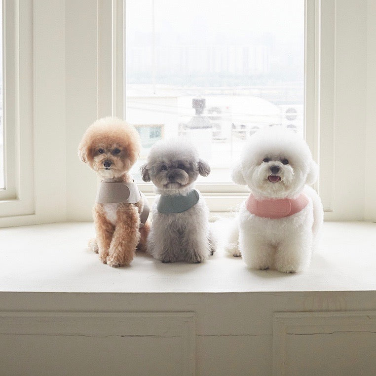 ラウンドパターンで愛犬それぞれの体の屈曲に合わせてフィットする着用感と胸に巻くため、首に負担をかけないデザイン。