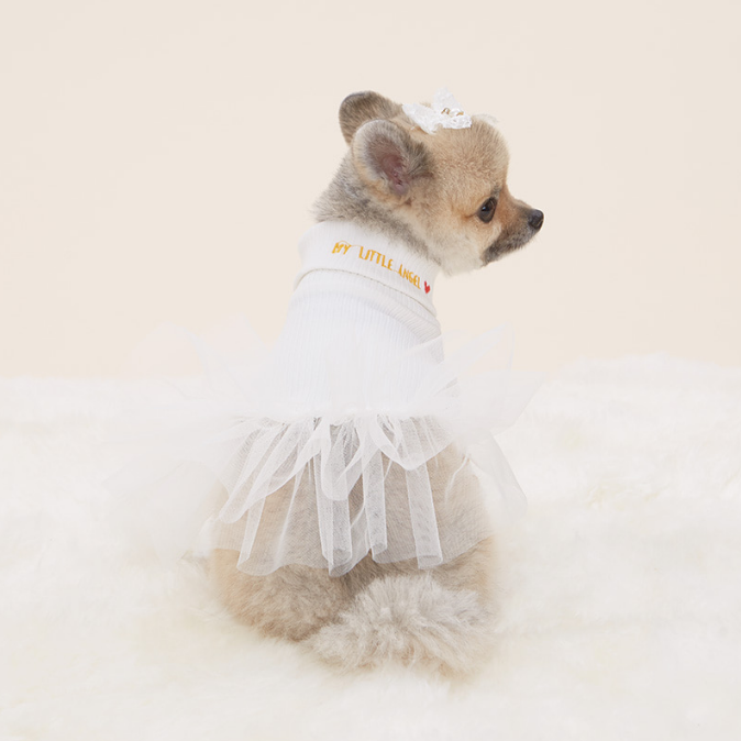 『MY LITTLE ANGELの刺繍が可愛い!天使のような愛犬にぴったりなドレス!』