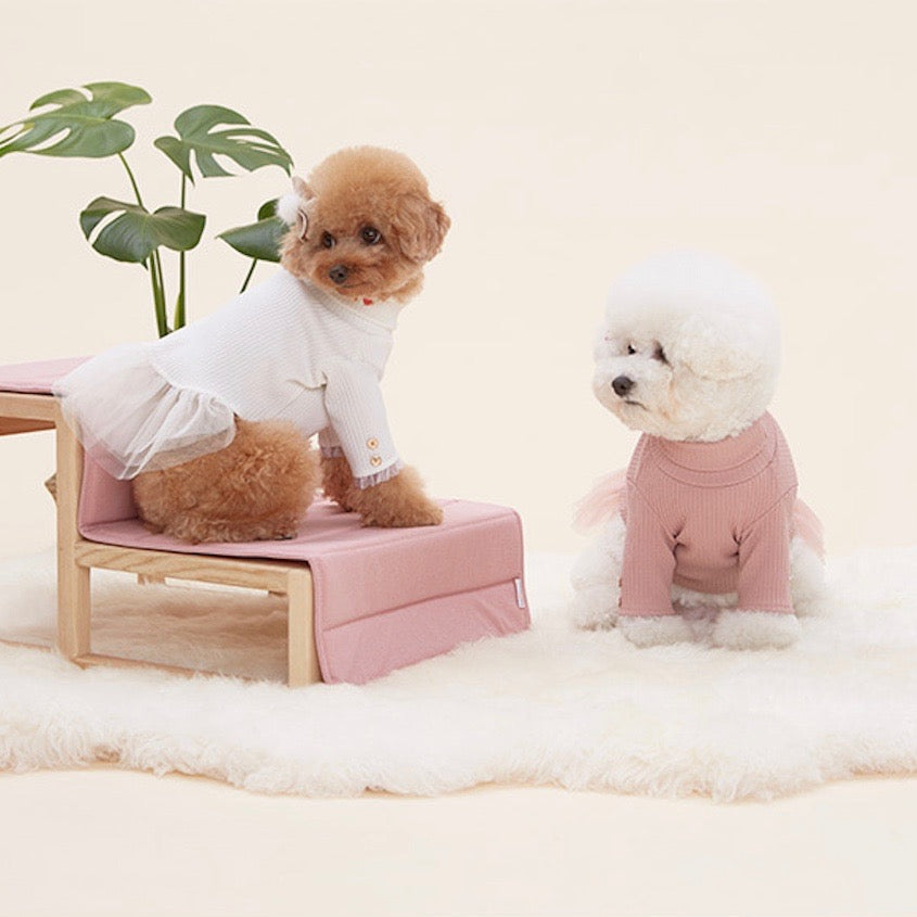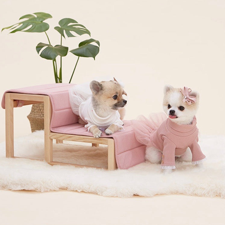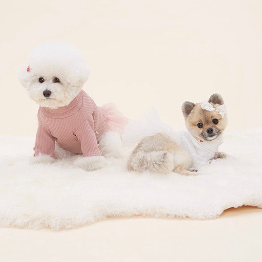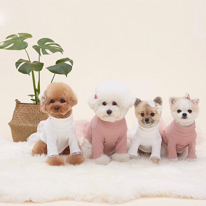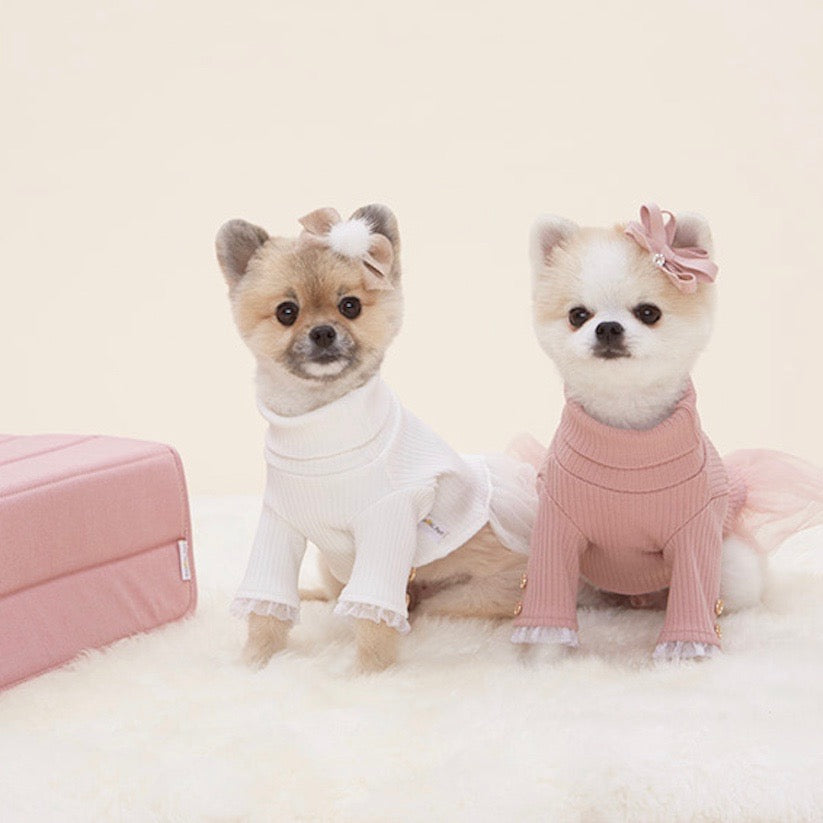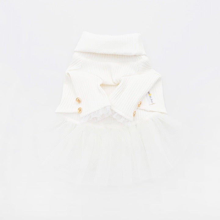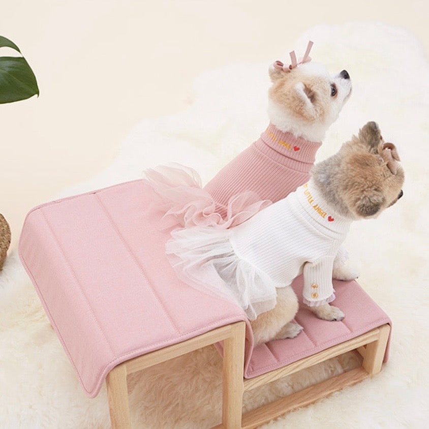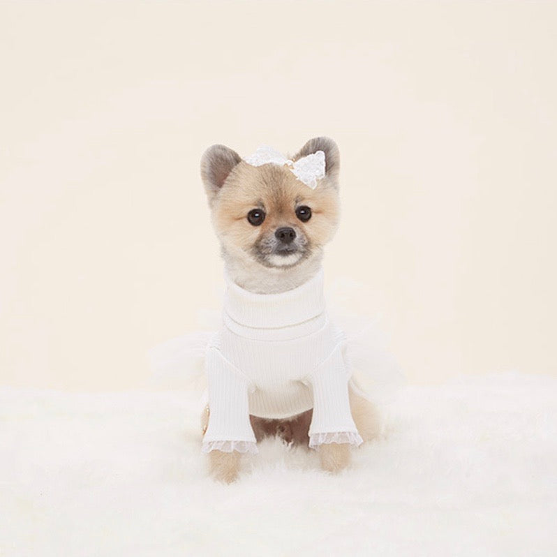 タートルネックの襟元に刺繍された『My little angel』がポイントのドレス!刺繍の通り、可愛い天使のような愛犬にぴったりのゴージャスなドレス!