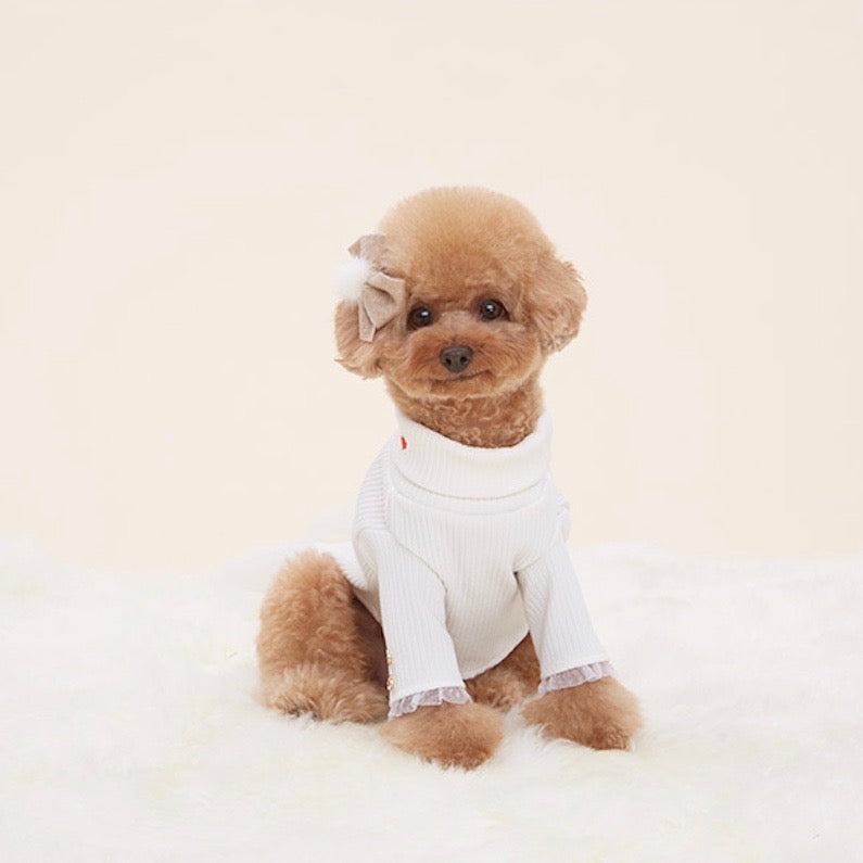 タートルネック部分は愛犬の首元が苦しくならないよう、しかし保温性をしっかり保てるよう何度もサンプルを作り直しちょうど良いバランスを考慮して作られました。