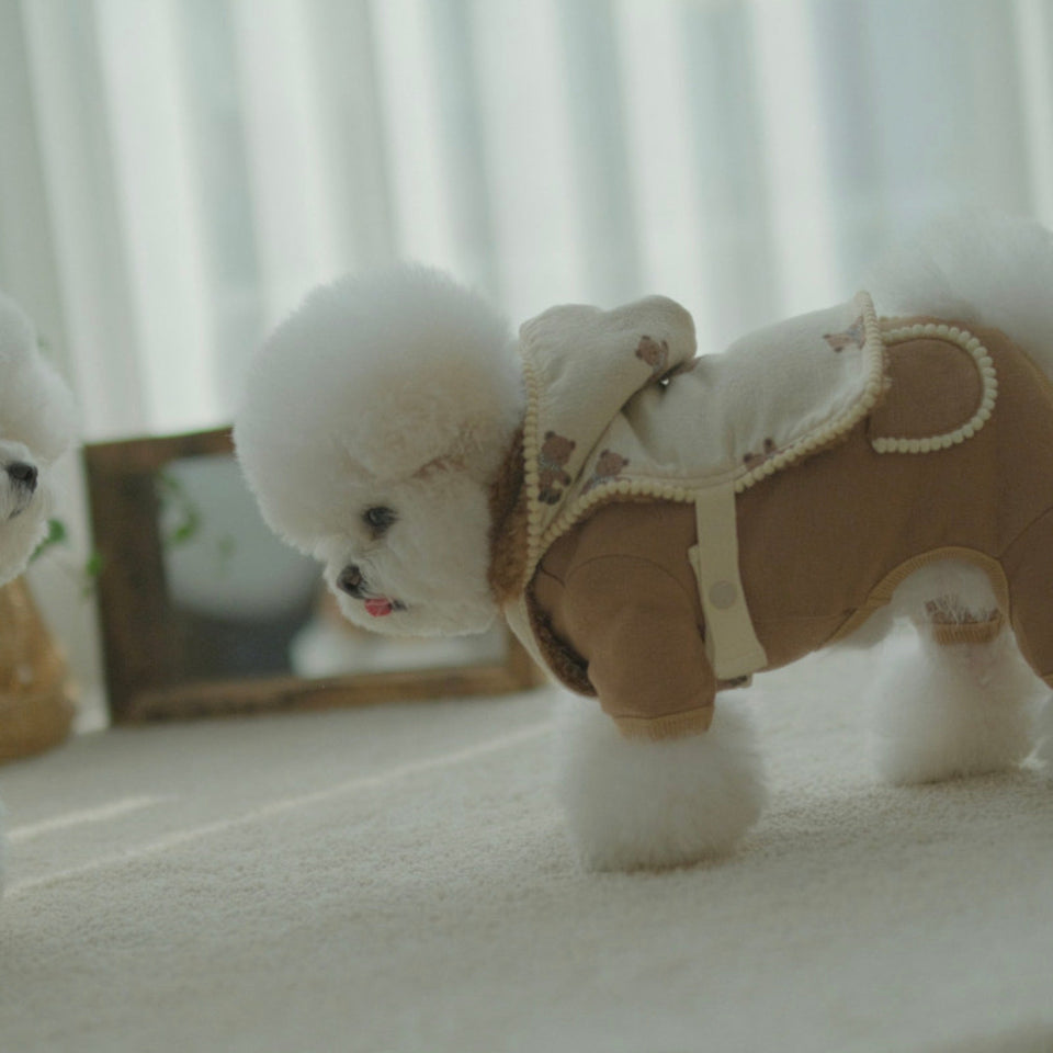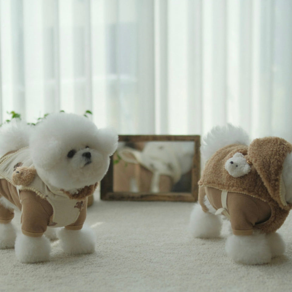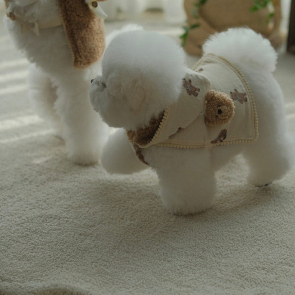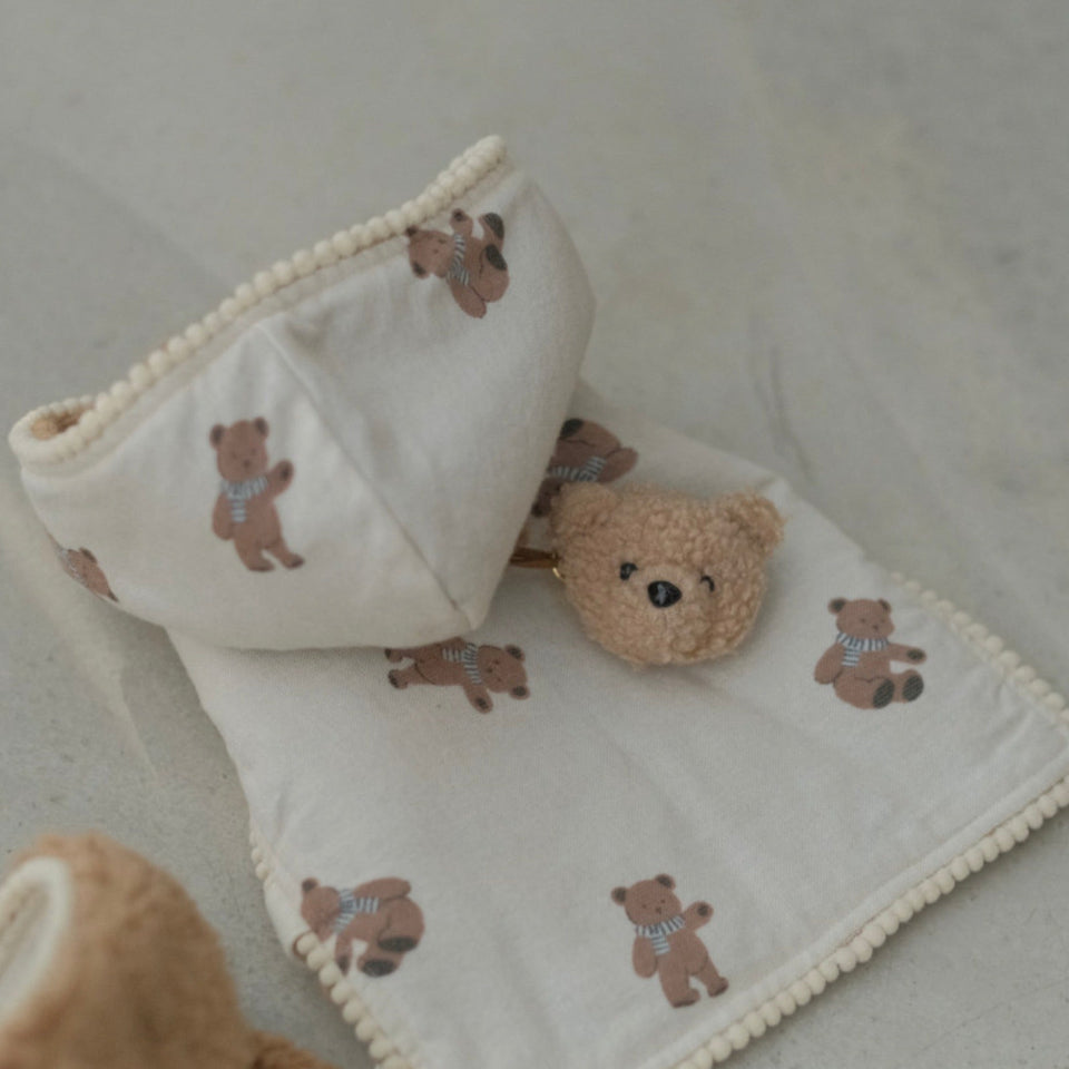 表地はもこもこなボアで裏地はくまさんのプリントがされたコットン生地のリバーシブル仕様!