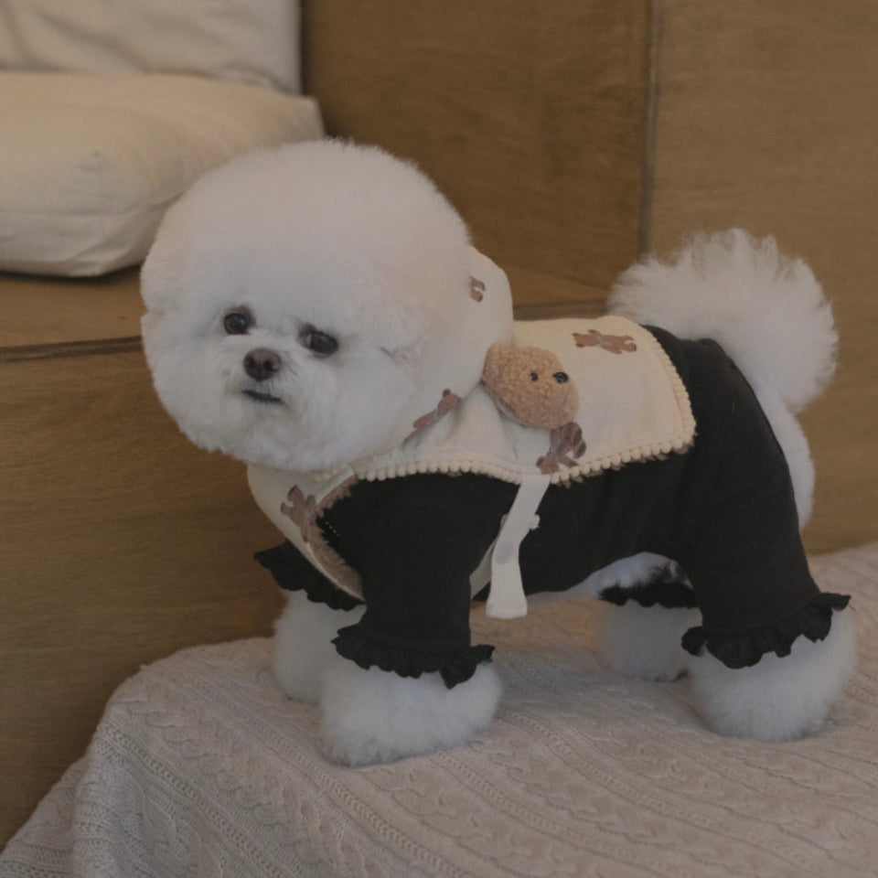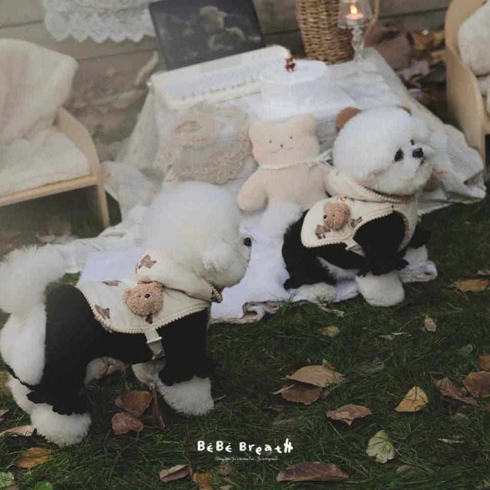 お散歩時には、ハーネスを通す穴が空いているので、ハーネスの上から羽織ることができます!