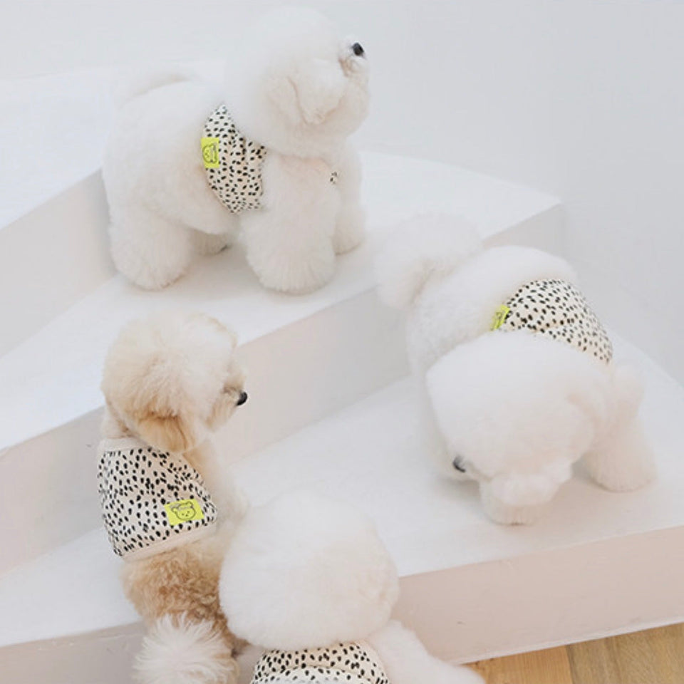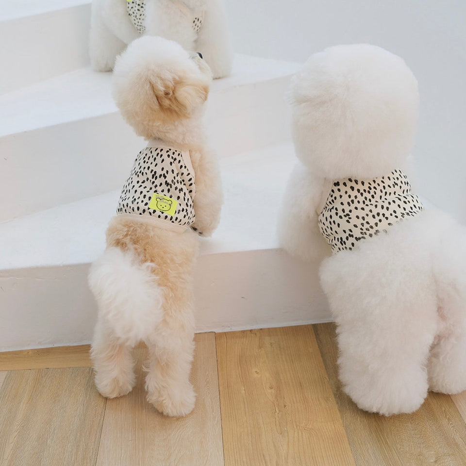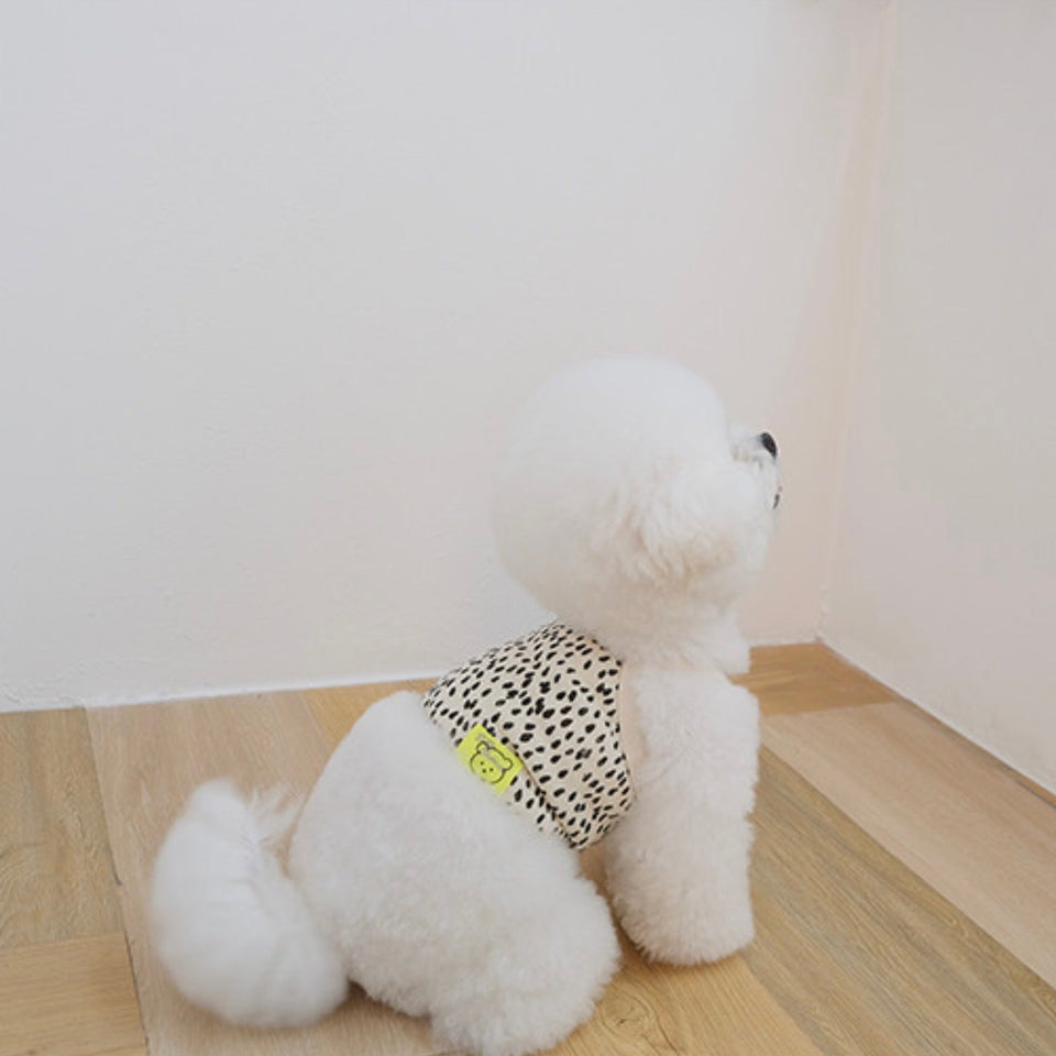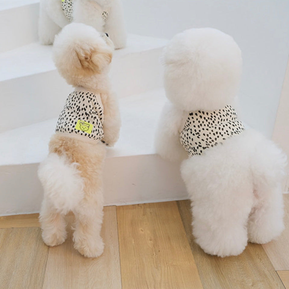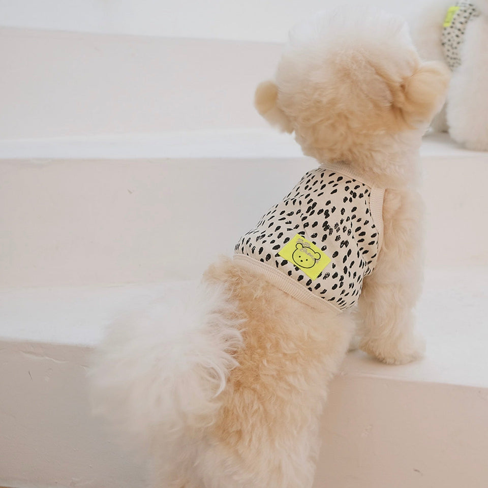 アイボリーとブラックのトーンダウンしたカラーの組み合わせのヒョウ柄パターンにライトイエローのくまラベルがワンポイントでとっても可愛いデザイン♡