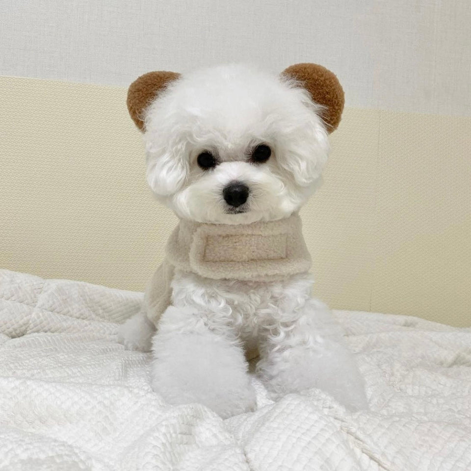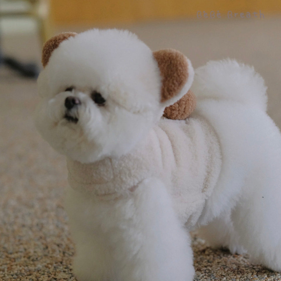 表地は軽くてふわふわ暖かなボアフリース素材で、愛犬の肌に直接触れる裏地はコットン生地で作られているため、敏感肌の子でも気にせず着用いただけます!