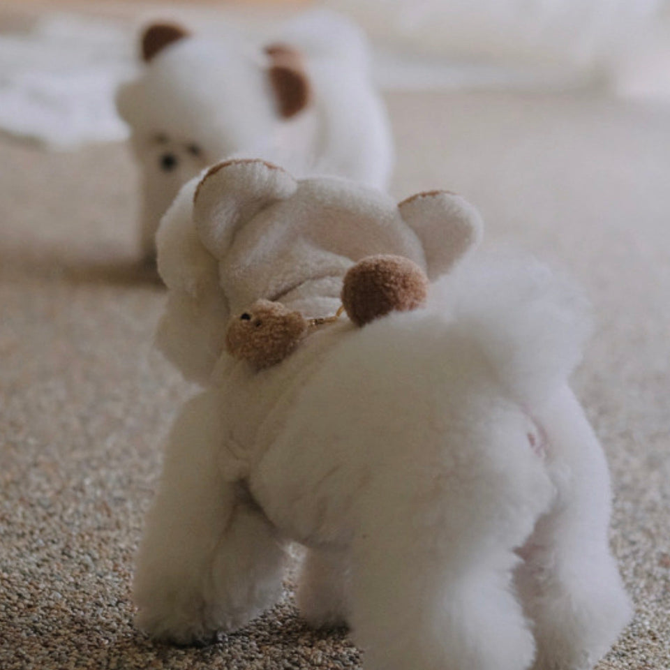 フードを被らなくてもくまさんに見えるよう設計されているため、ハーネスを装着するだけで前後左右どこから見ても可愛いくまさんに♡