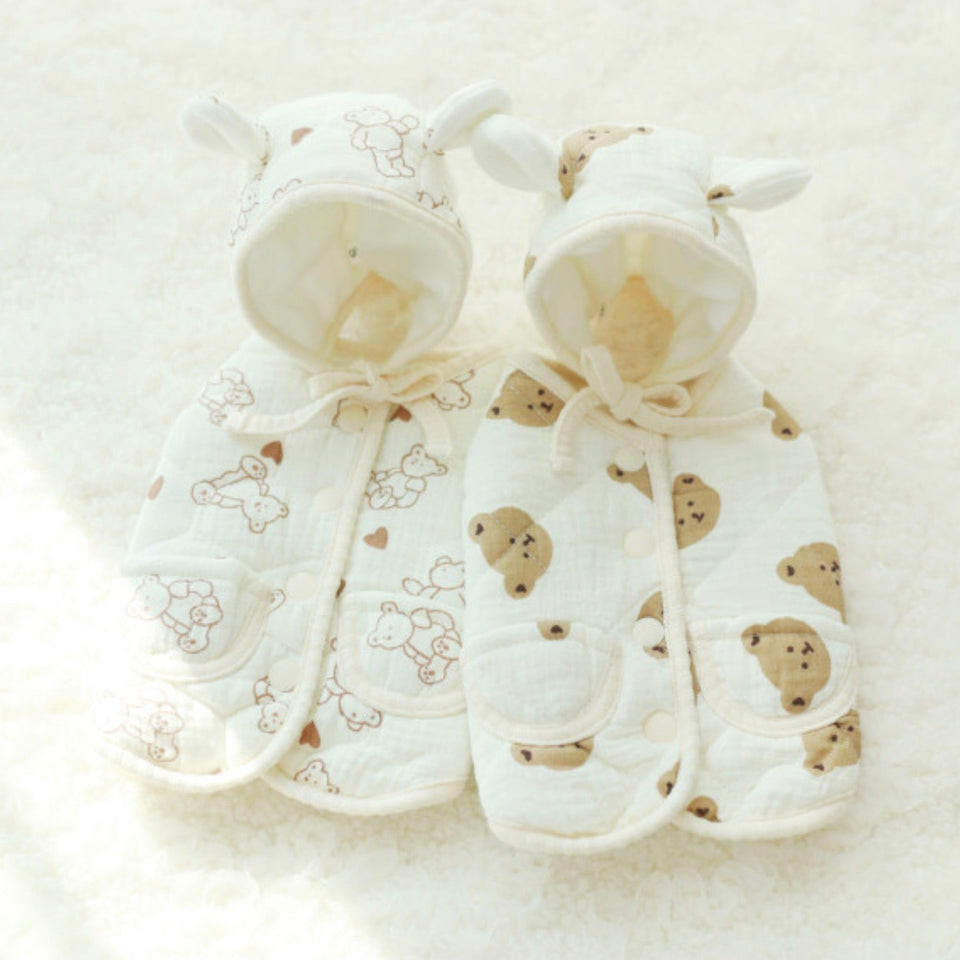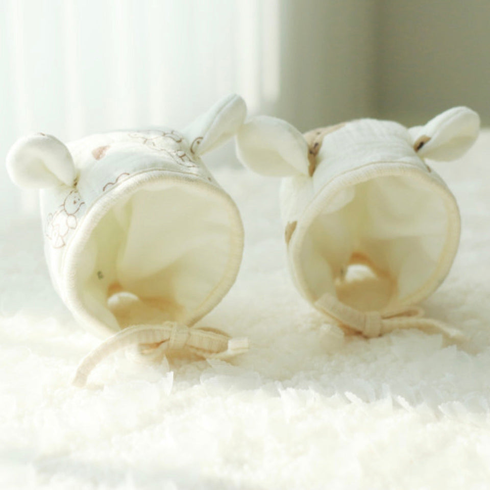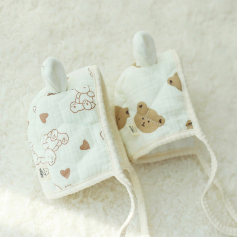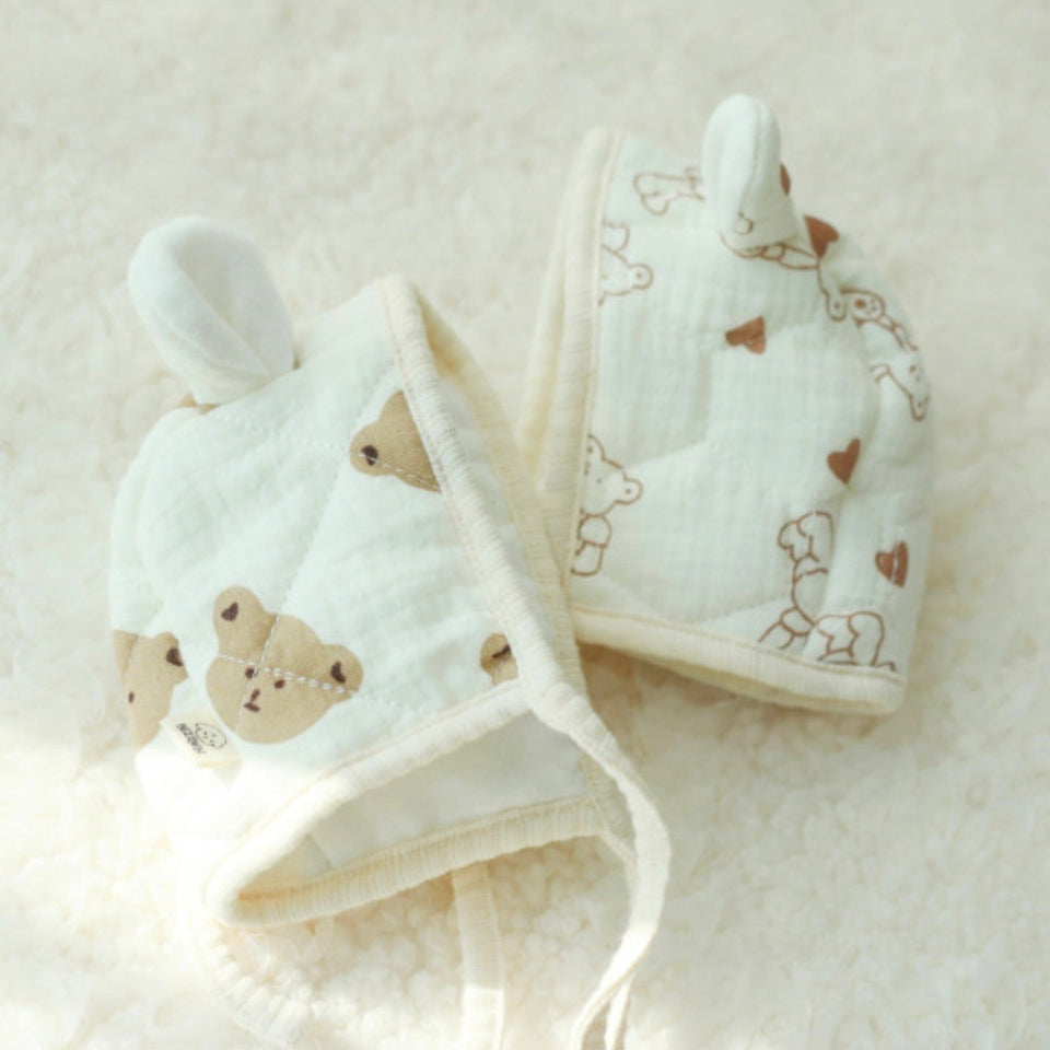 『くまのプリントが可愛い柔らか天然素材のハット』