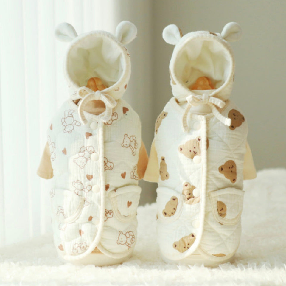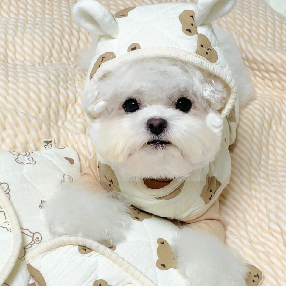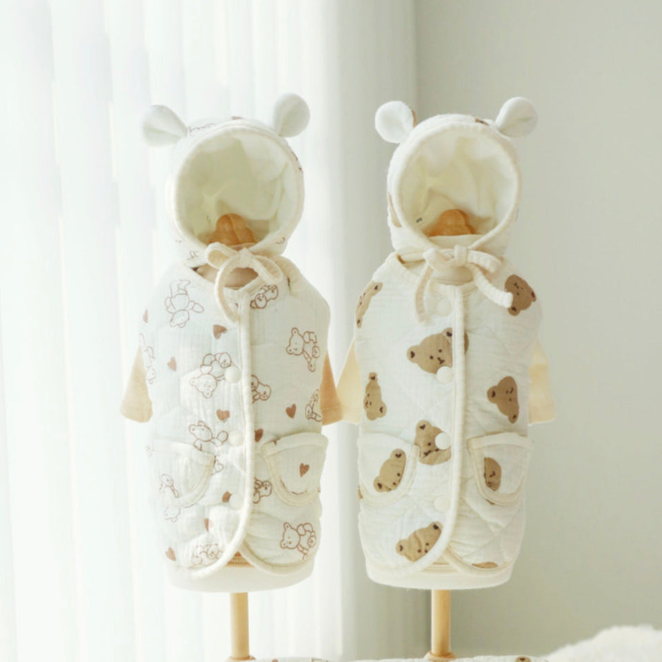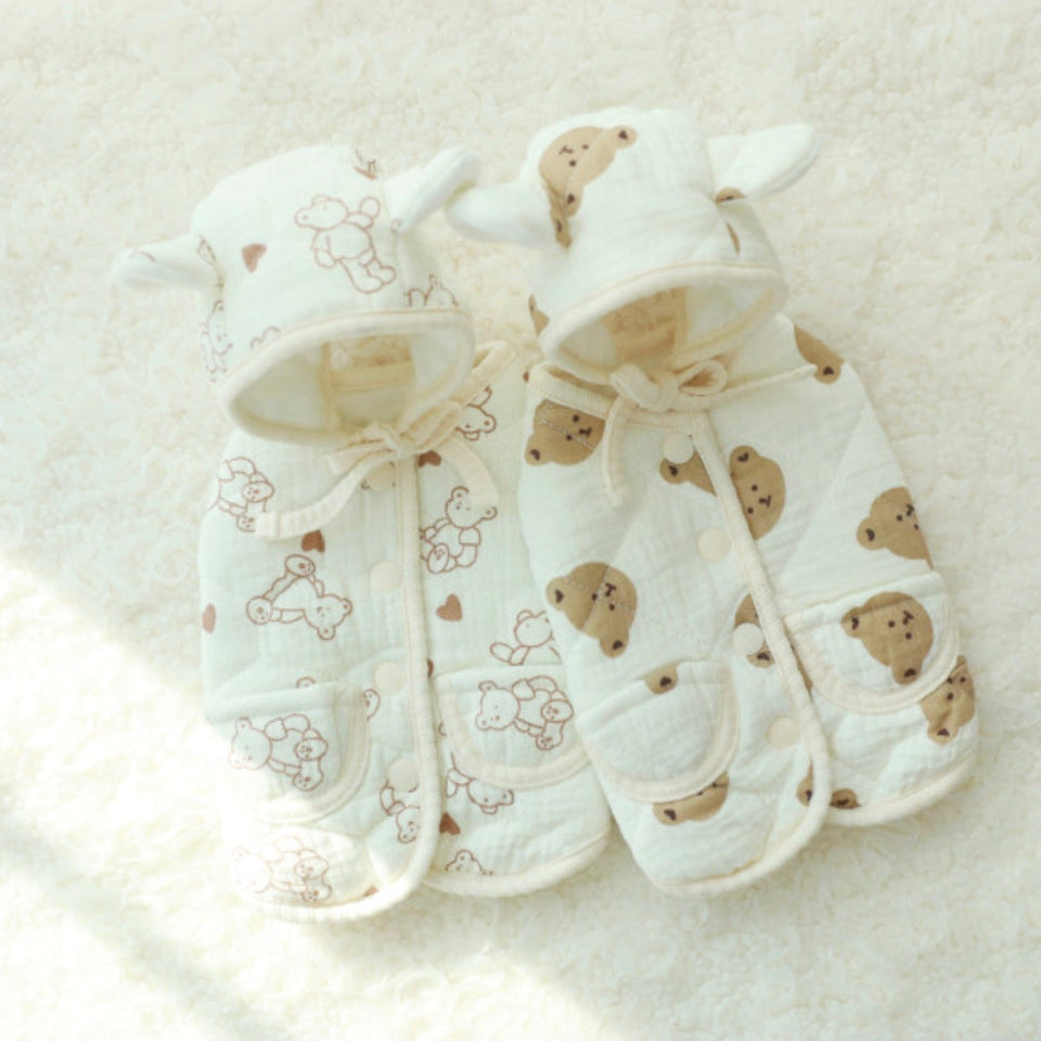 『くまのプリントが可愛い柔らか天然素材のハット』