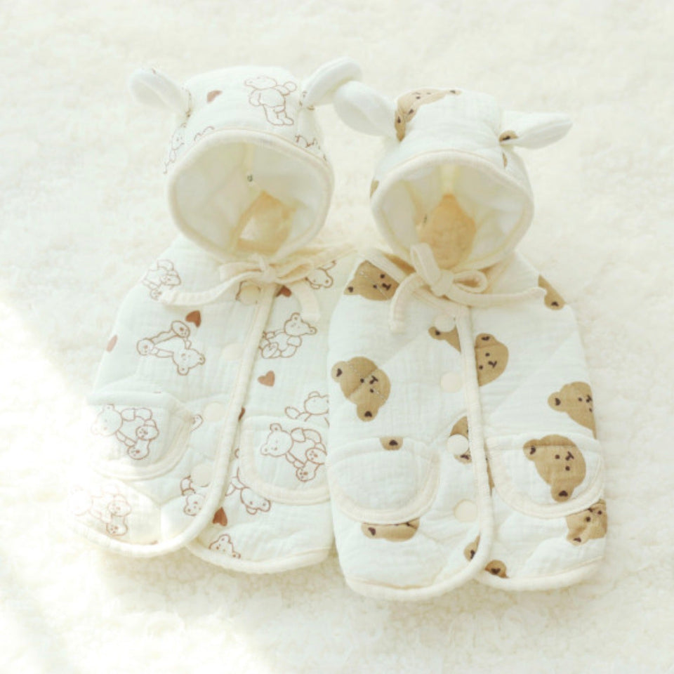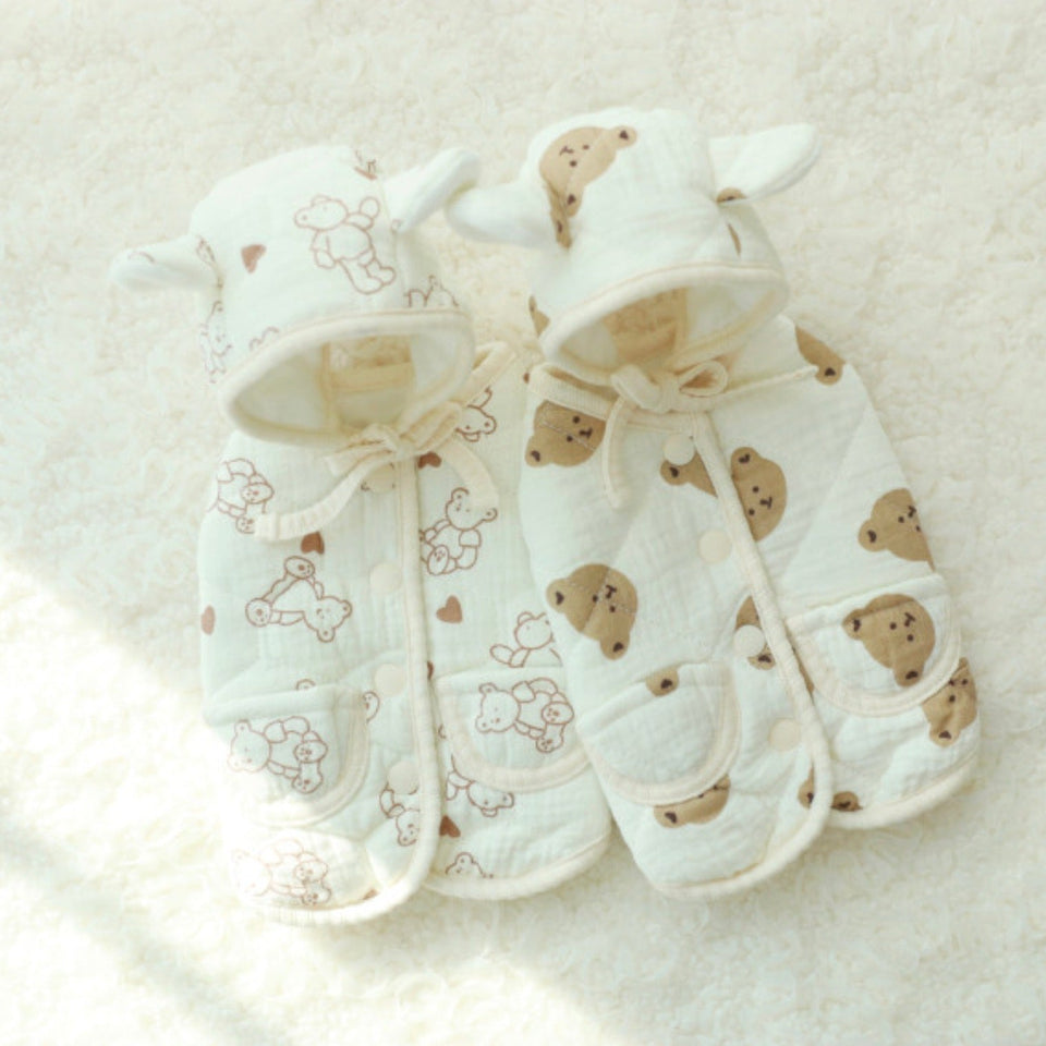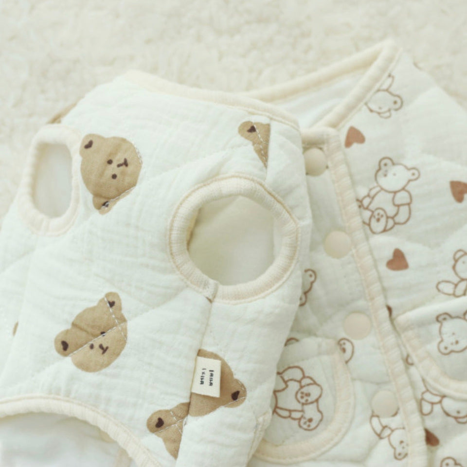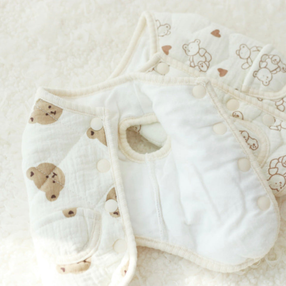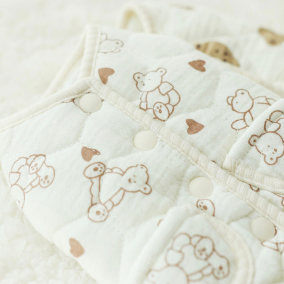 『くまのプリントが可愛い柔らか天然素材のベストパディング』