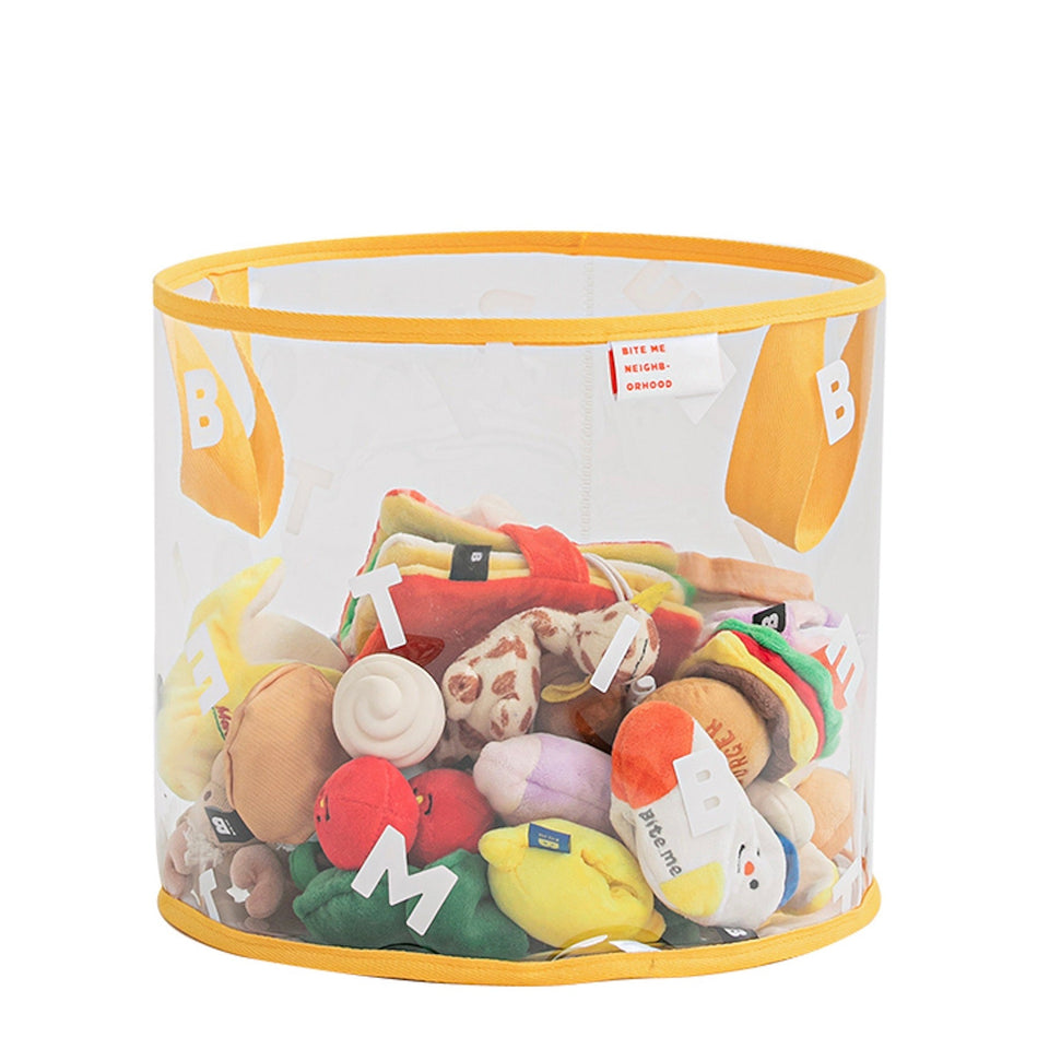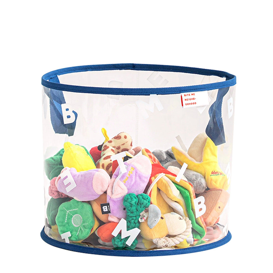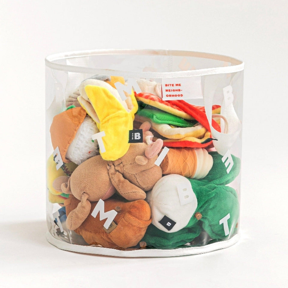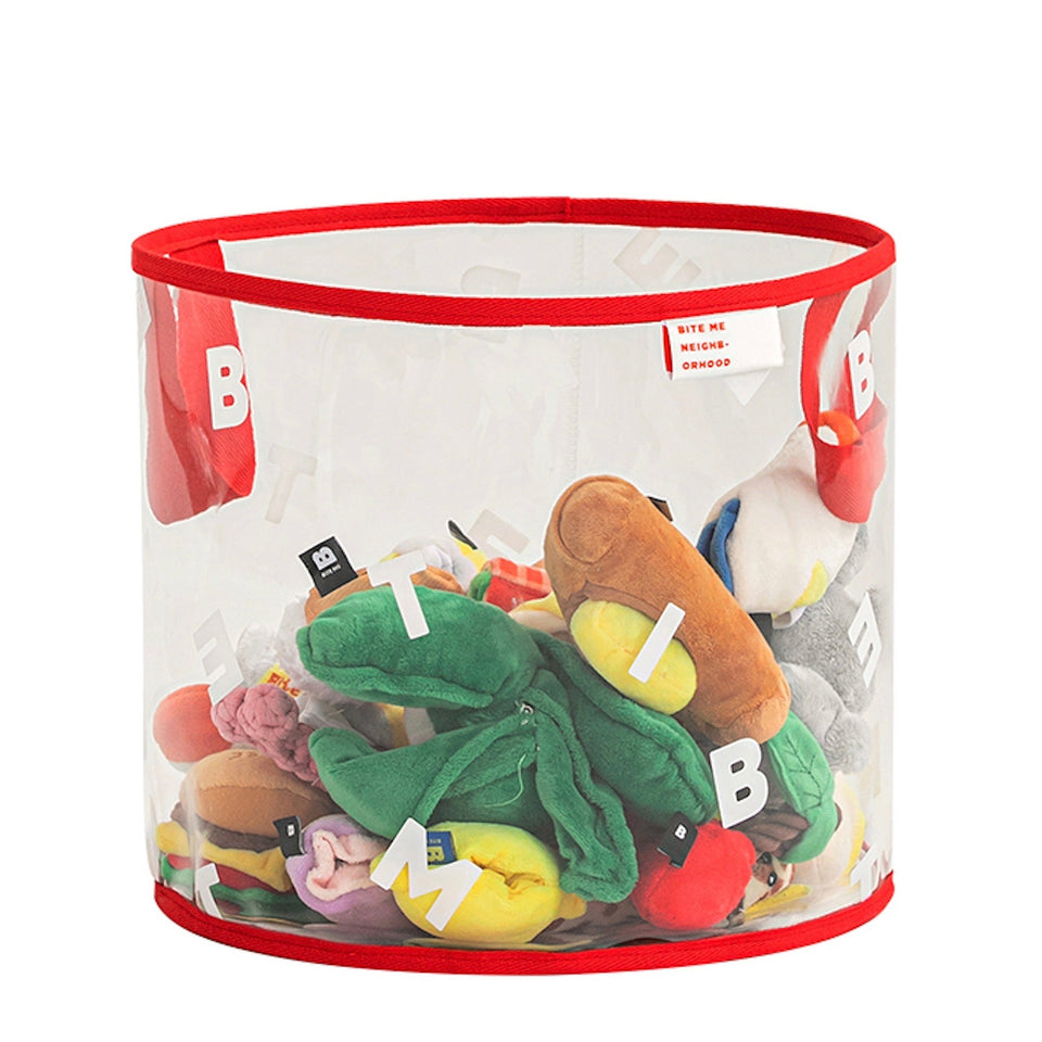 クリアボディにBITE MEがレタリングされたシンプルでインテリアを損なわないデザインなので、どんな場所にもピッタリのおもちゃ箱です!