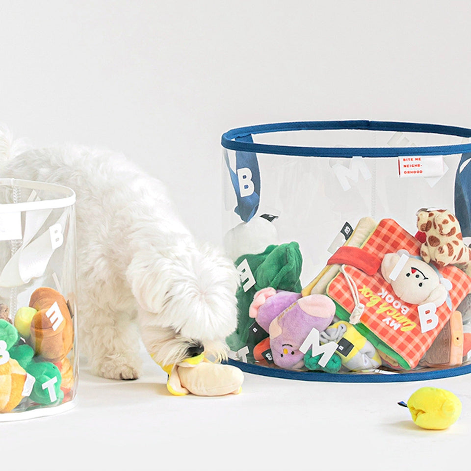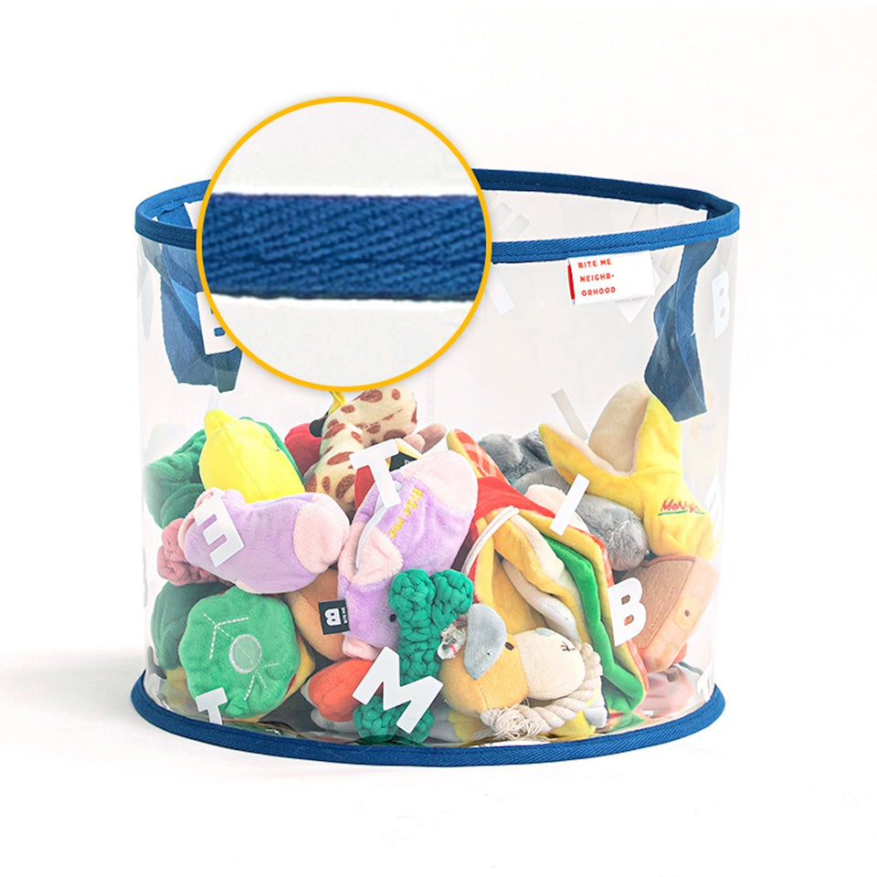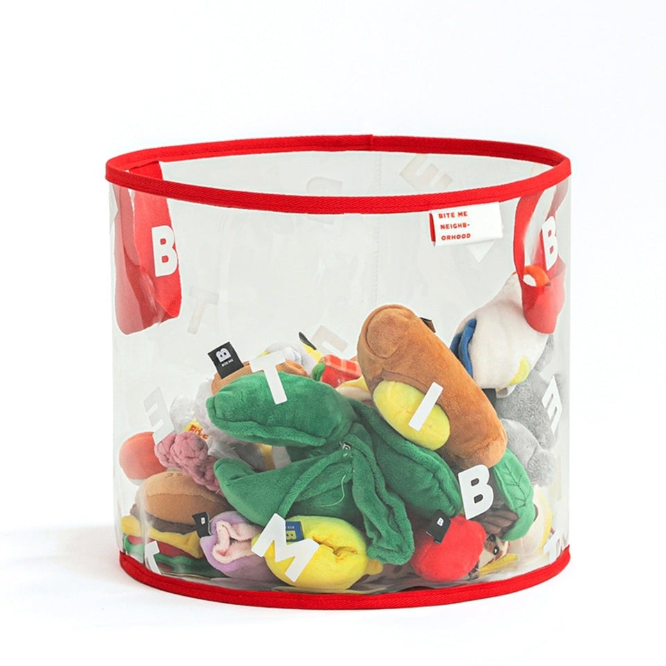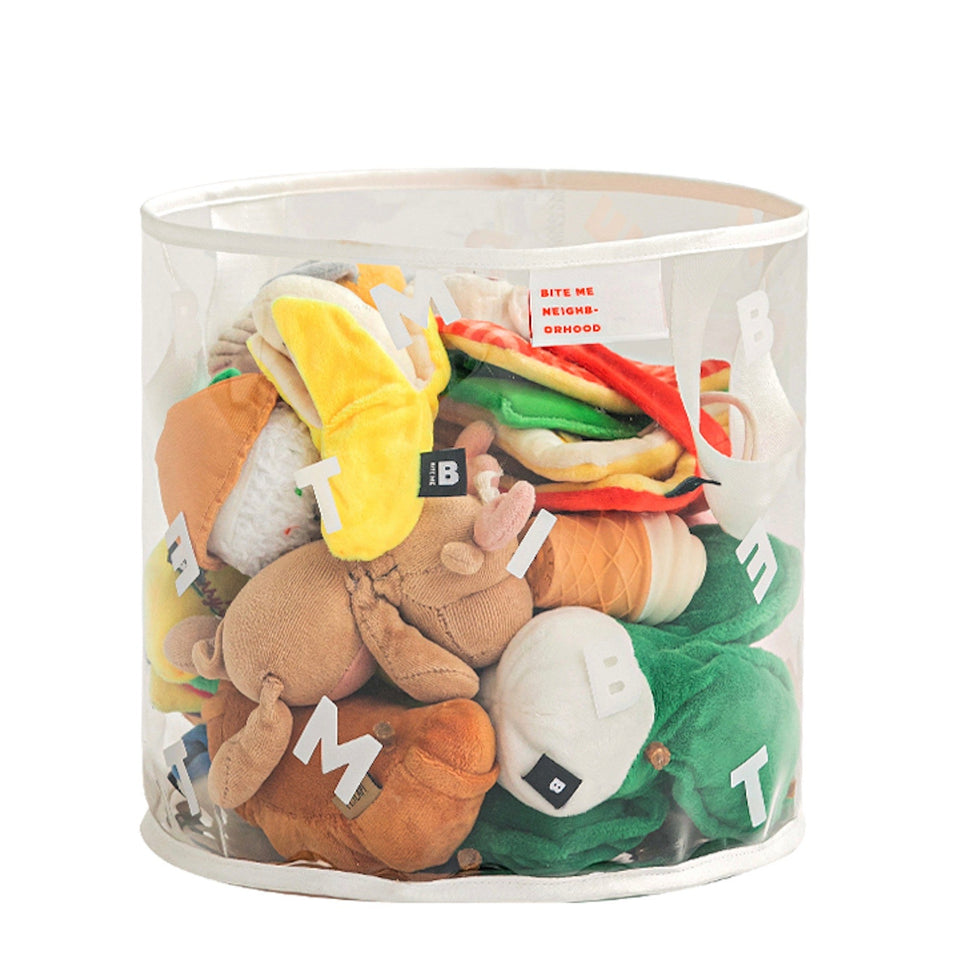 クリアボディにBITE MEがレタリングされたシンプルでインテリアを損なわないデザインなので、どんな場所にもピッタリのおもちゃ箱です!