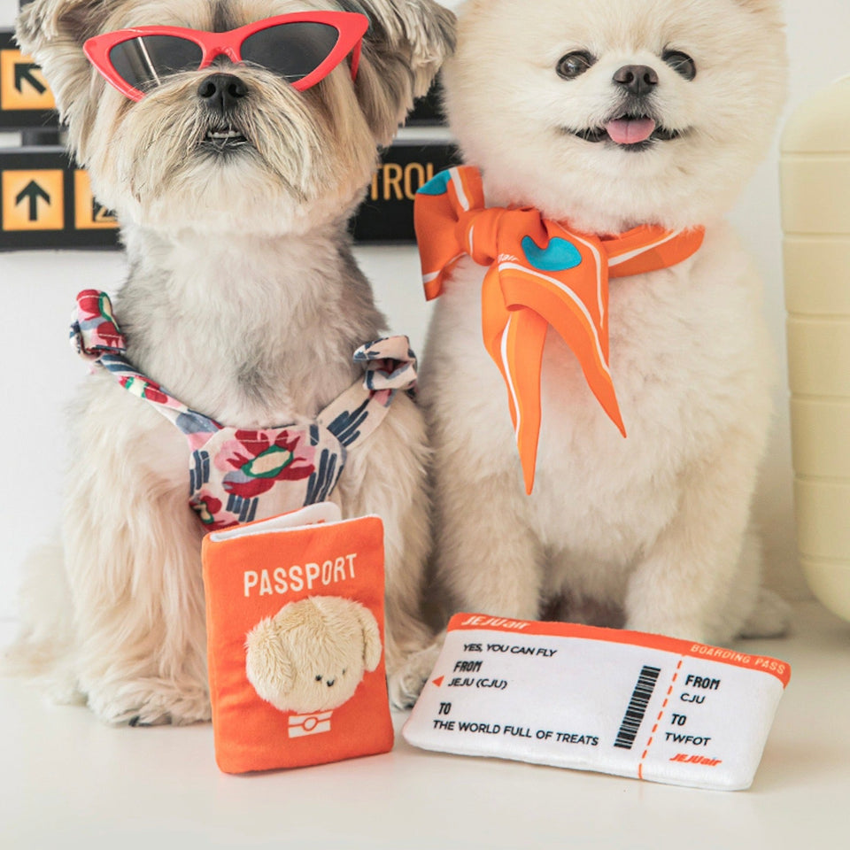 旅のときめきをペットと一緒に分かち合っていただくために、特別なペットパスポートを発行し、チケットとパスポートのおもちゃがセットになったトラベルトイになりました!