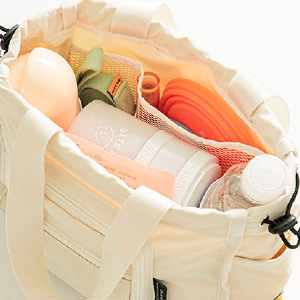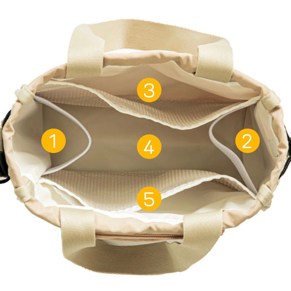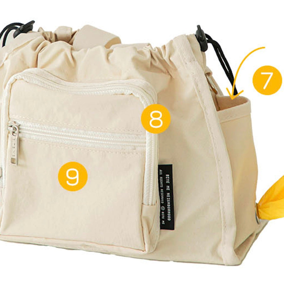 コンパクトサイズで9つの収納ポケットを備えたお散歩バッグ!