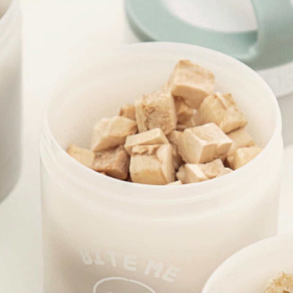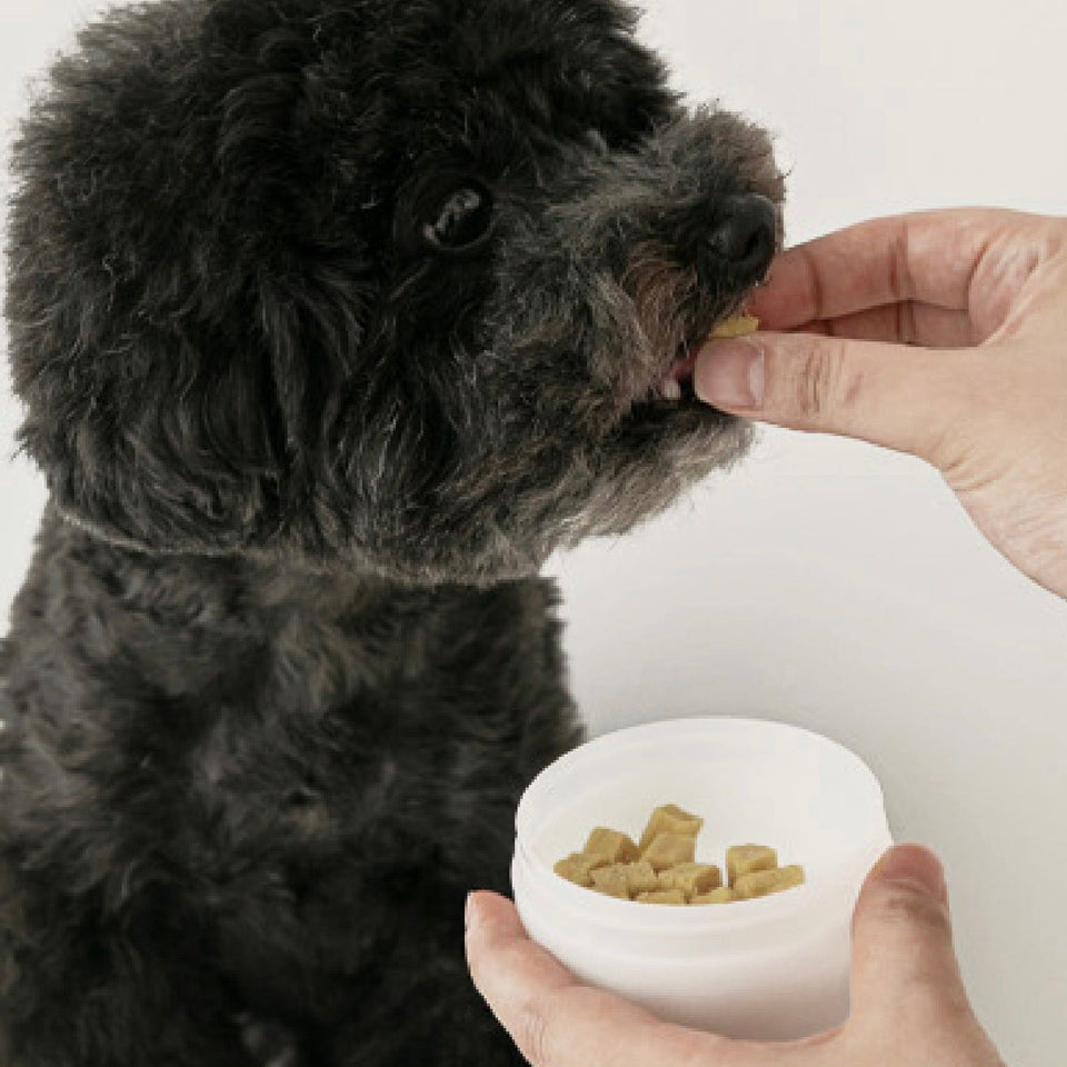 持ち運びもしやすい形でお散歩や外出時、愛犬のためにおやつを少量持ち歩くのにぴったりのサイズです。