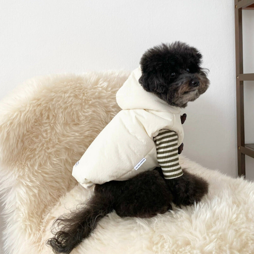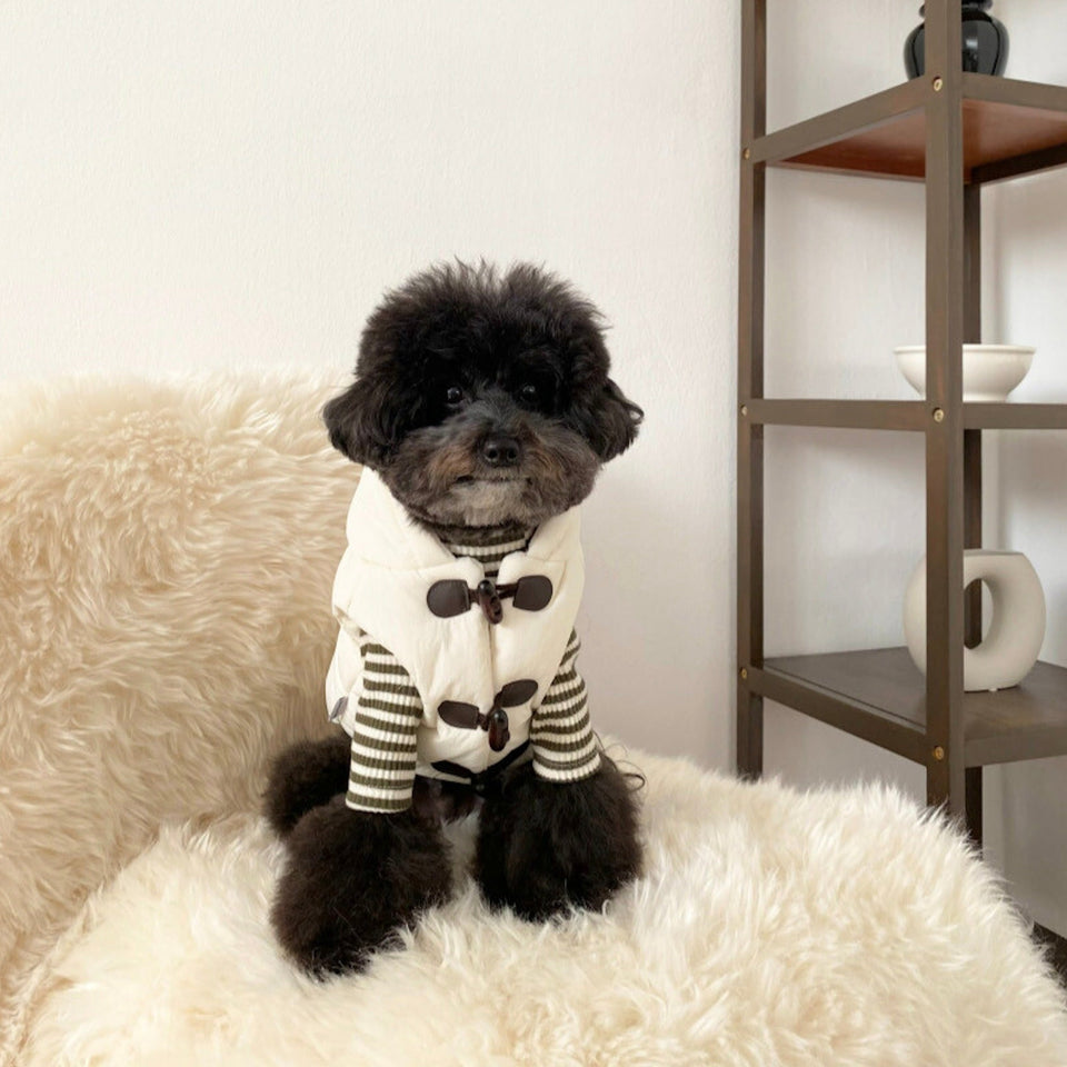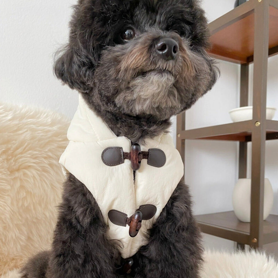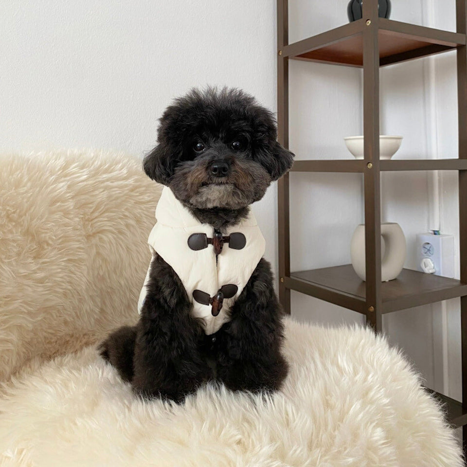 厚みがあって裾が浮くのを防ぐためにバンディング処理をして風を防ぎ、雪や雨を防ぐ生活防水機能と裏地は起毛して暖かく、愛犬を寒さから守ってくれます!