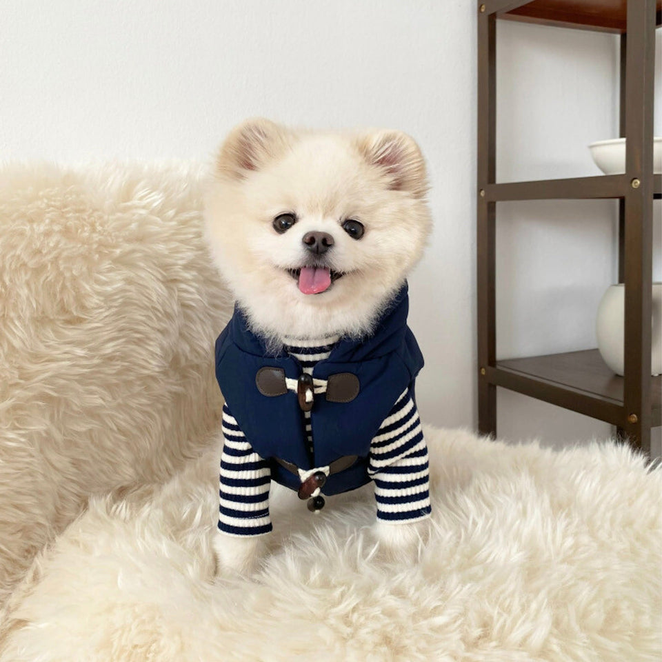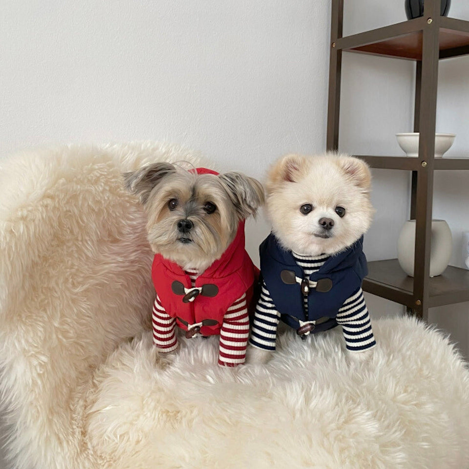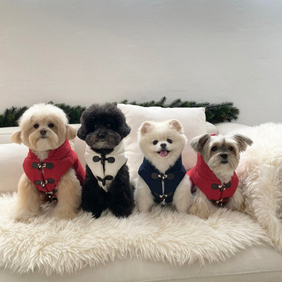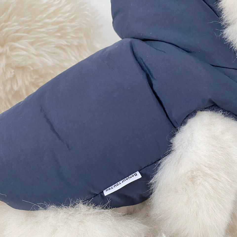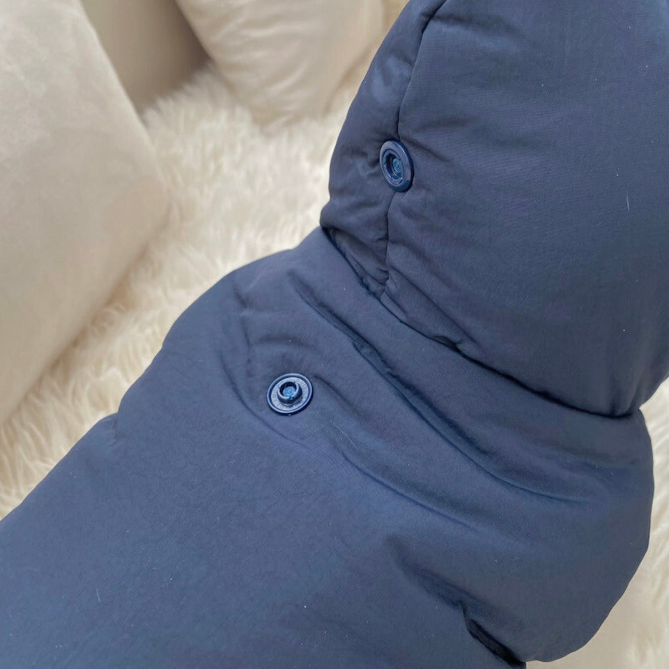 厚みがあって裾が浮くのを防ぐためにバンディング処理をして風を防ぎ、雪や雨を防ぐ生活防水機能と裏地は起毛して暖かく、愛犬を寒さから守ってくれます!