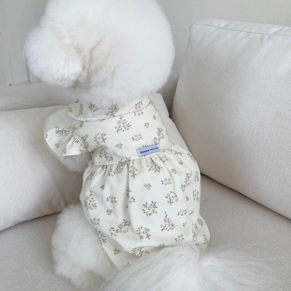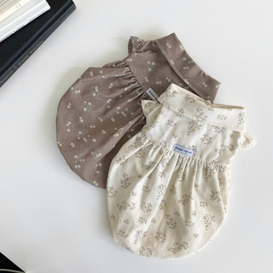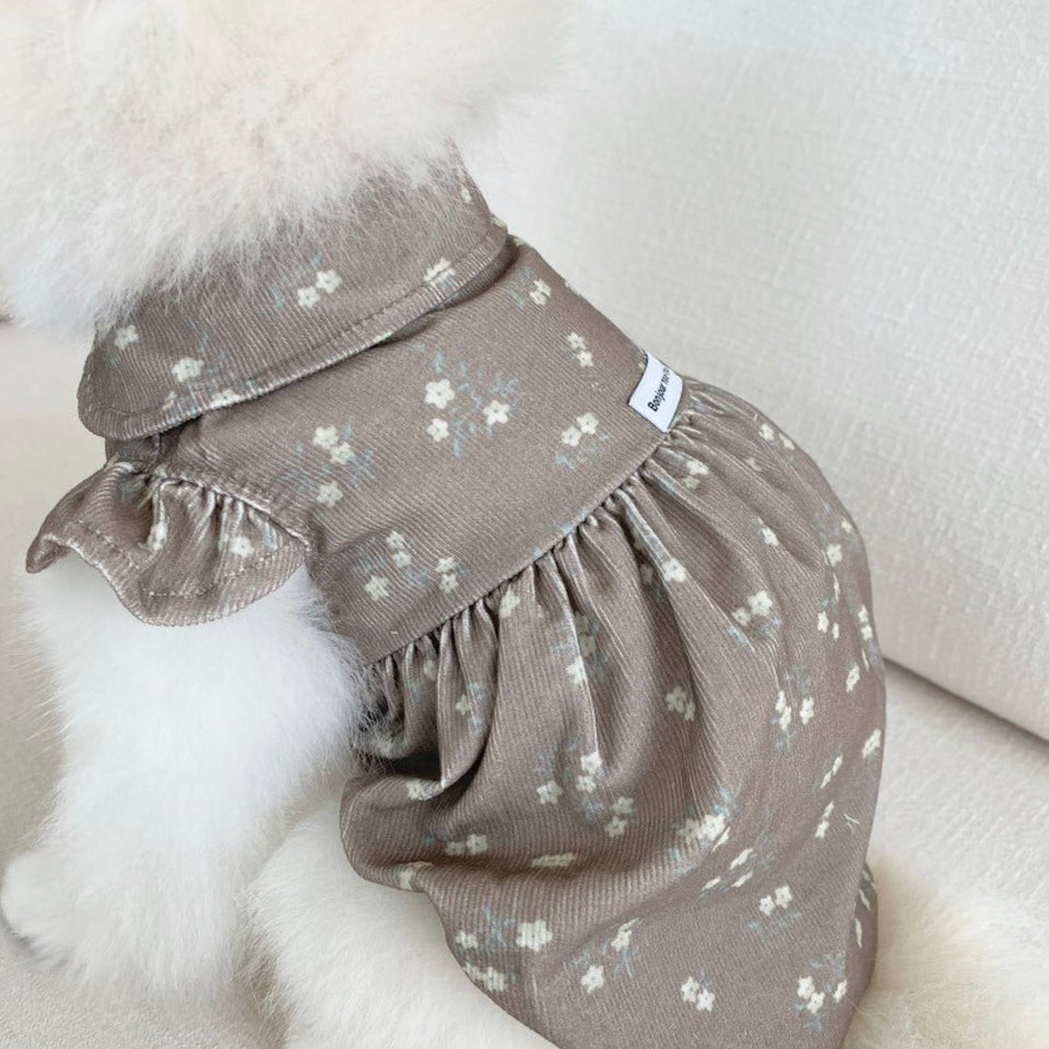 『コーデュロイ素材で保温性バッチリの上品小花柄ワンピース