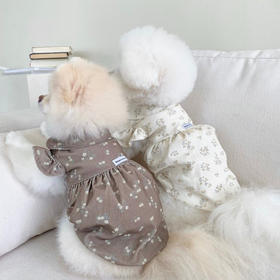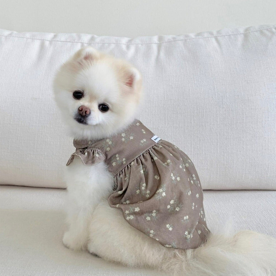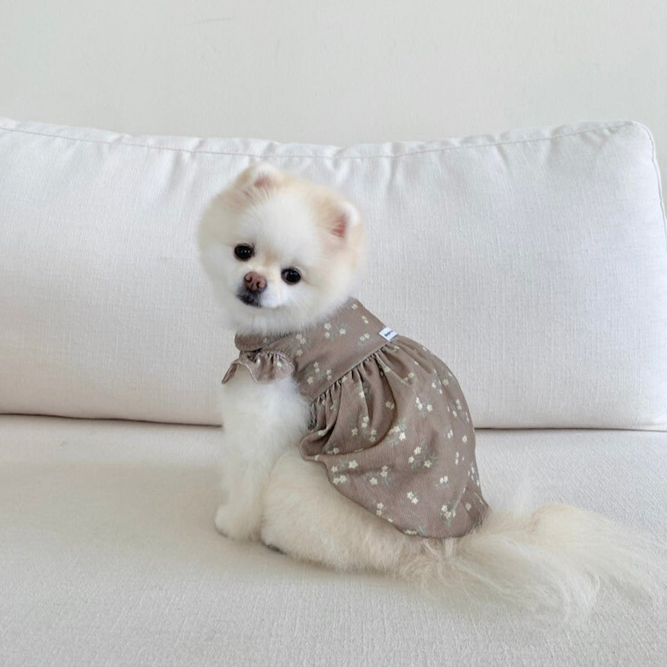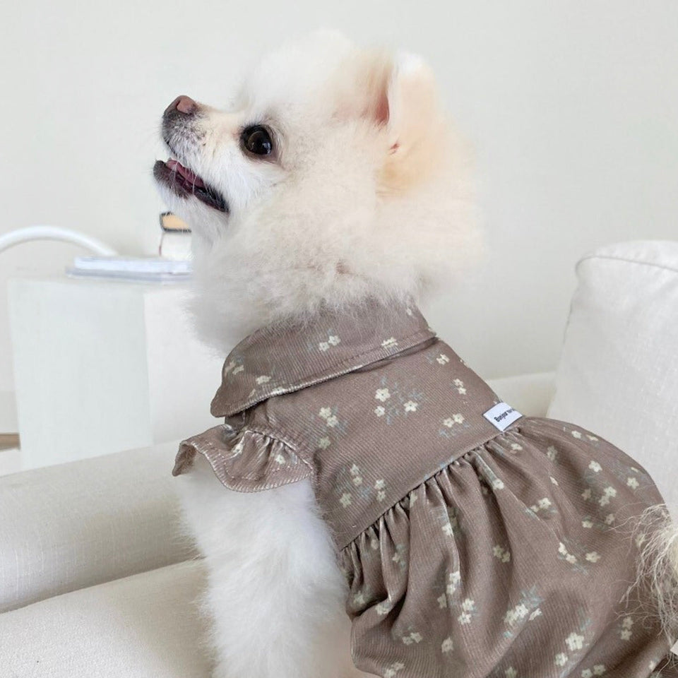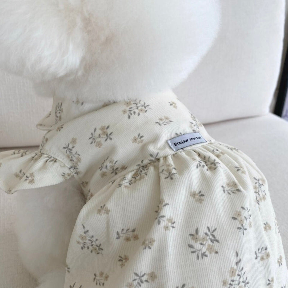 『コーデュロイ素材で保温性バッチリの上品小花柄ワンピース』