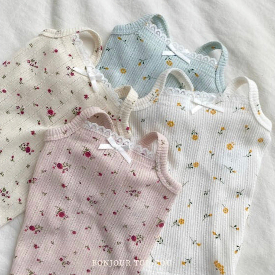 韓国で大人気のブランド"Bonjour TOU-TOU"のフラワーアイレットスリーブレスです。