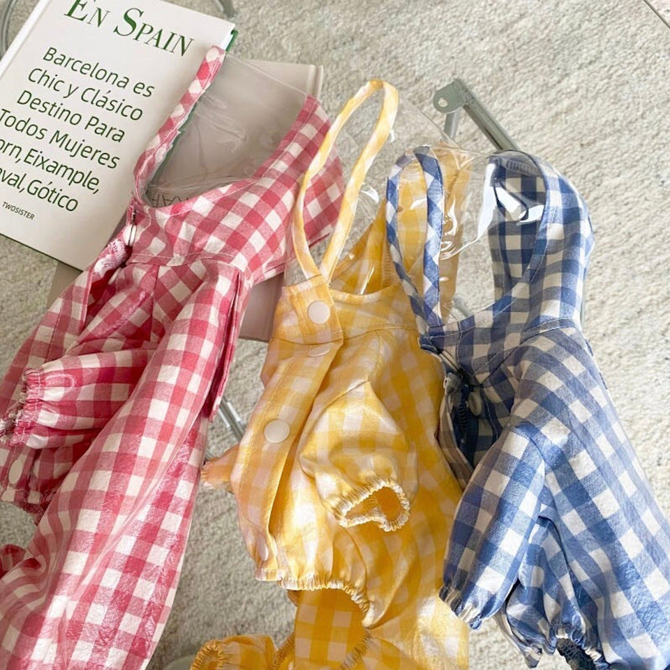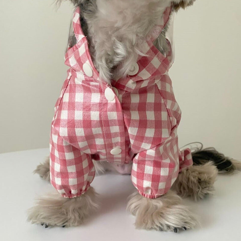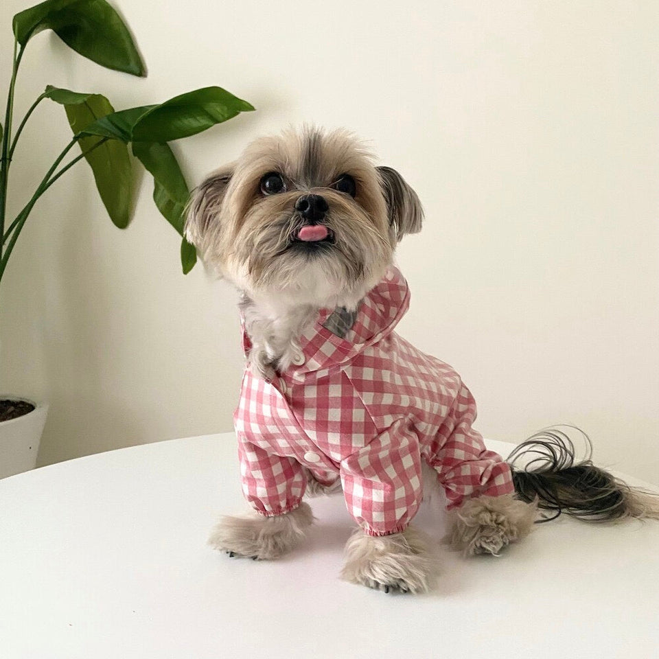 とっても可愛い明るいカラーのチェック柄レインコートで雨の日もお散歩を楽しんでください♡