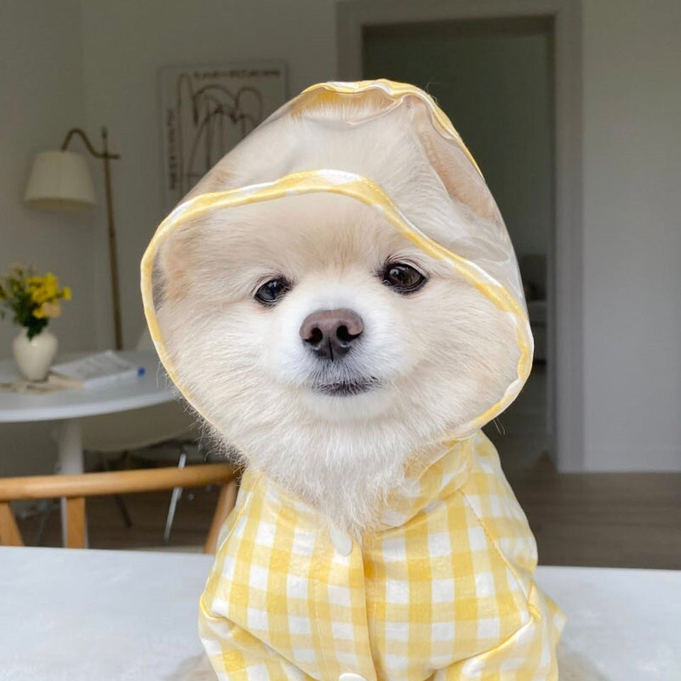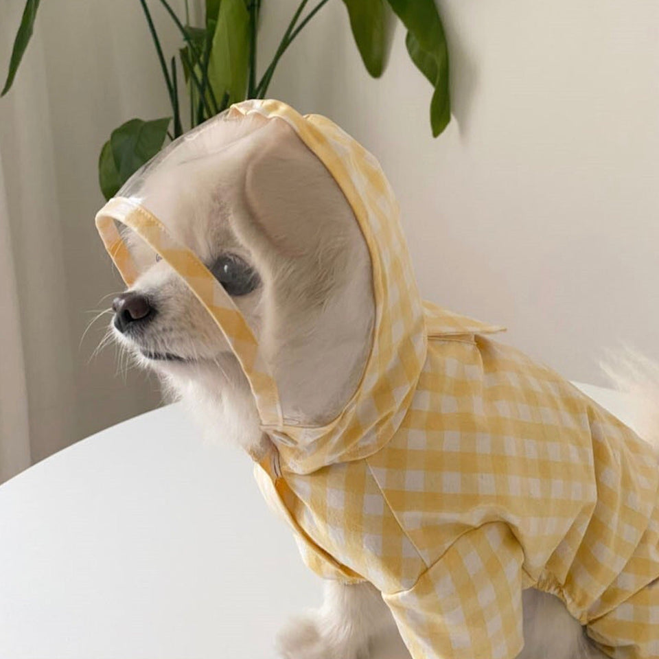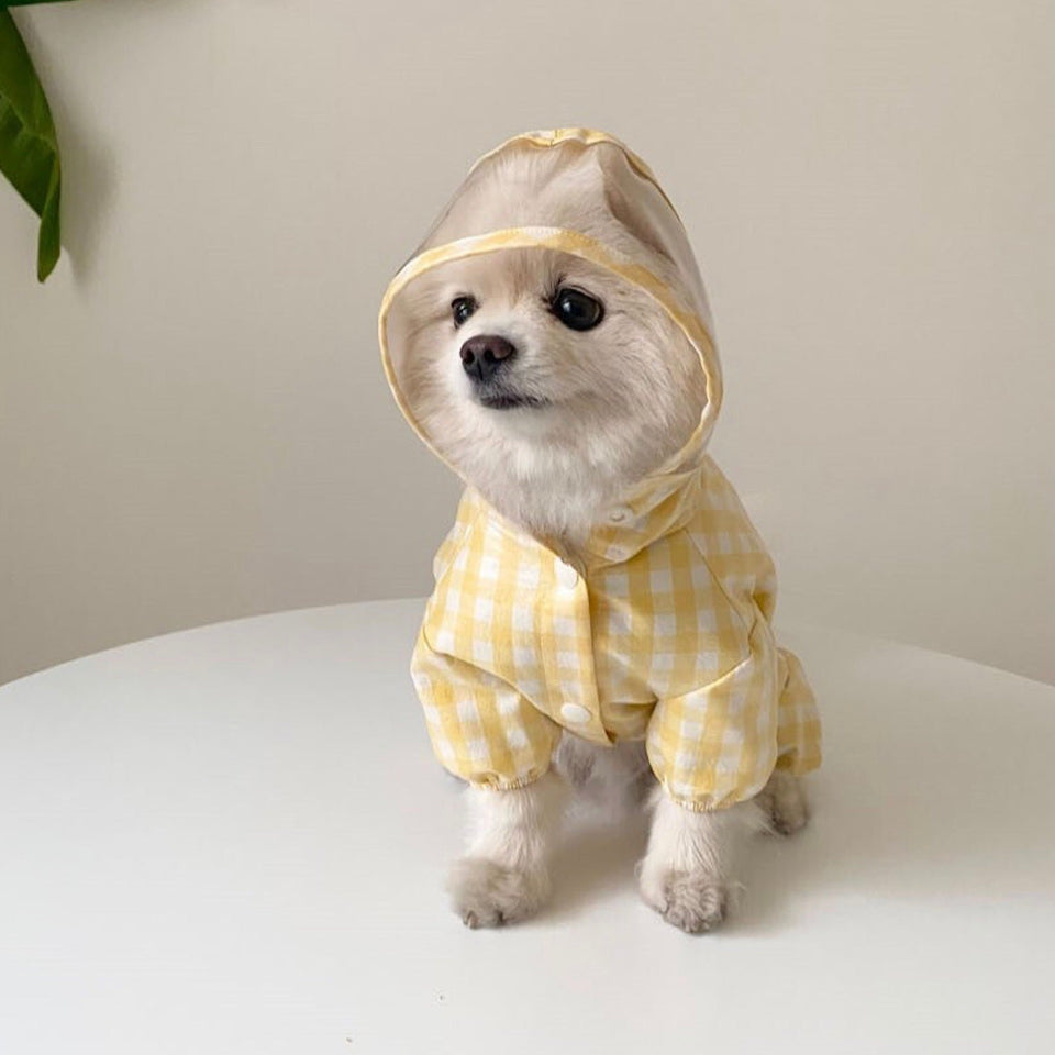 とっても可愛い明るいカラーのチェック柄レインコートで雨の日もお散歩を楽しんでください♡