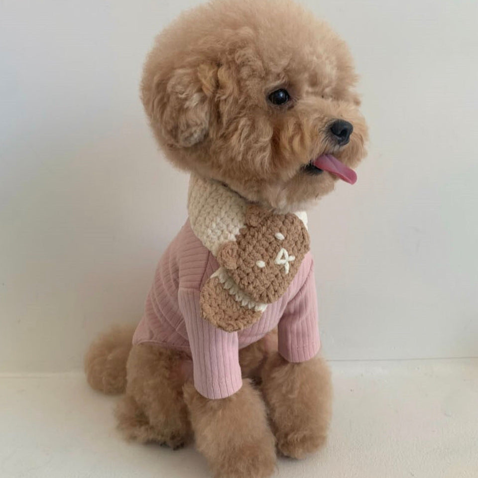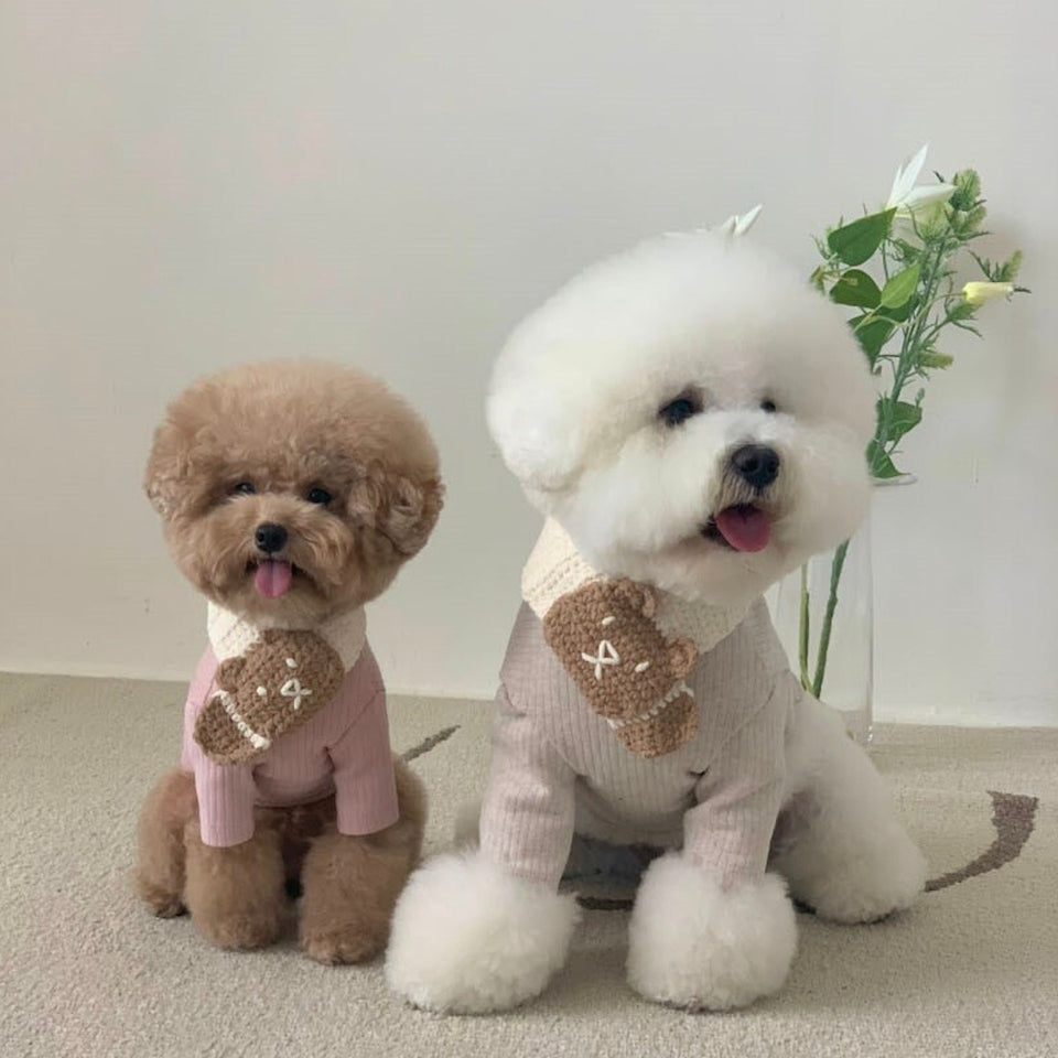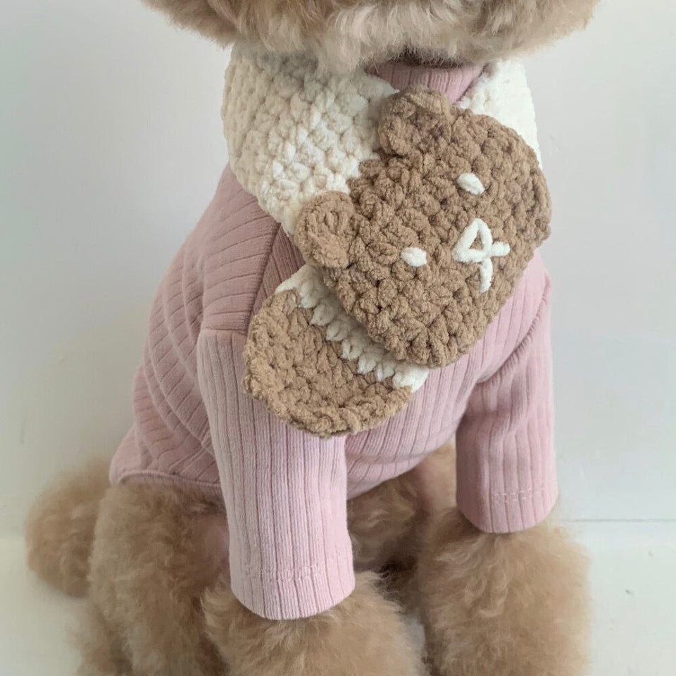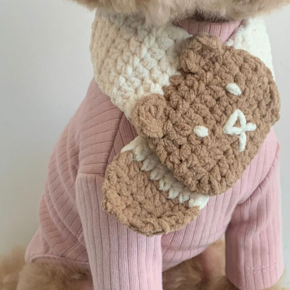 BonjourTOUTOUのオリジナルデザインで大ヒットし偽物も多く出回っているHi bearシリーズですが、ペットニッティングメーカーとのコラボで1点1点ハンドメイドで丁寧に作られたオールハンドメイドのニットマフラーです!