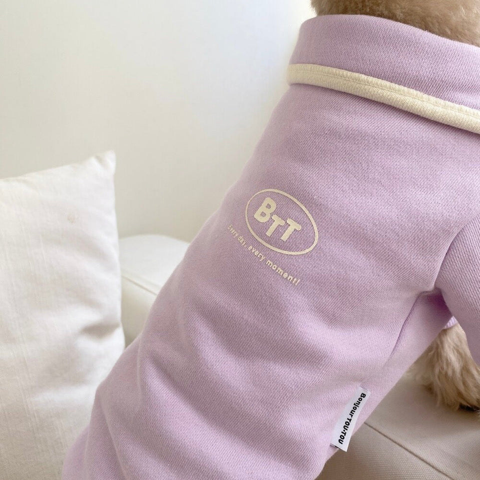 背中に配されたBTT(BonjourTOU-TOU)の特殊ゴム捺印がシンプルな中に特別感をプラスしてくれ、ロゴと同色でポイントとなる襟周りのパイピングもとてもアクセントになります♡