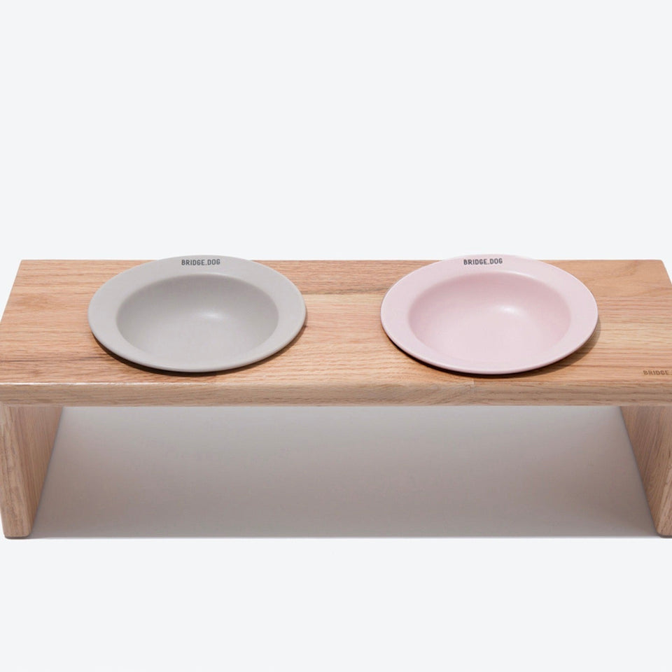 BRIDGE.DOGの陶磁器は、シンプルながら洗練された高級感のある独自のデザインと「高級白土」と「高級釉薬」を使用し、1300度の高温焼成によって3回焼かれることで有害成分がなく、わんちゃんが毎日口にするものなので"安心安全"に使っていただけます。