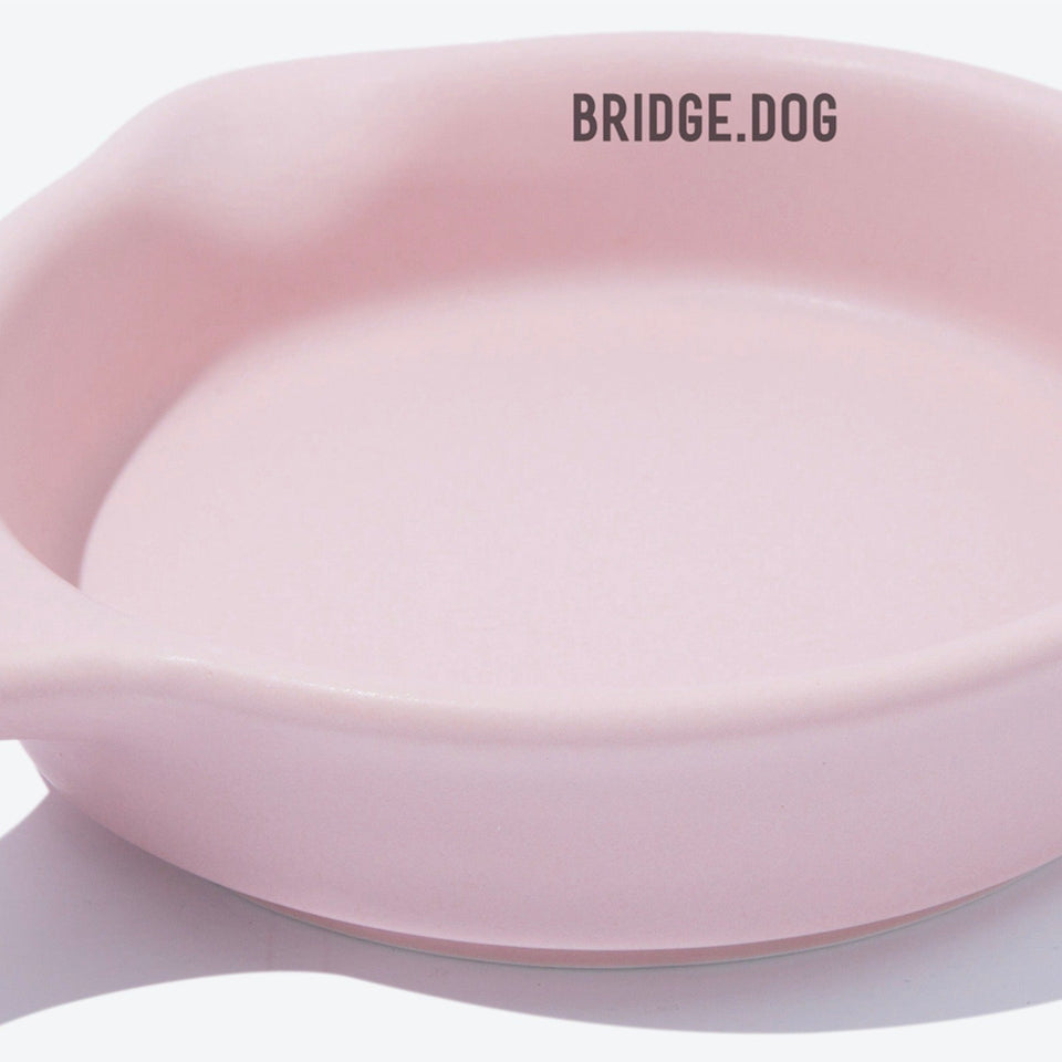 BRIDGE.DOGの陶磁器は、シンプルながら洗練された高級感のある独自のデザインと「高級白土」と「高級釉薬」を使用し、1300度の高温焼成によって3回焼かれることで有害成分がなく、わんちゃんが毎日口にするものなので"安心安全"に使っていただけます。