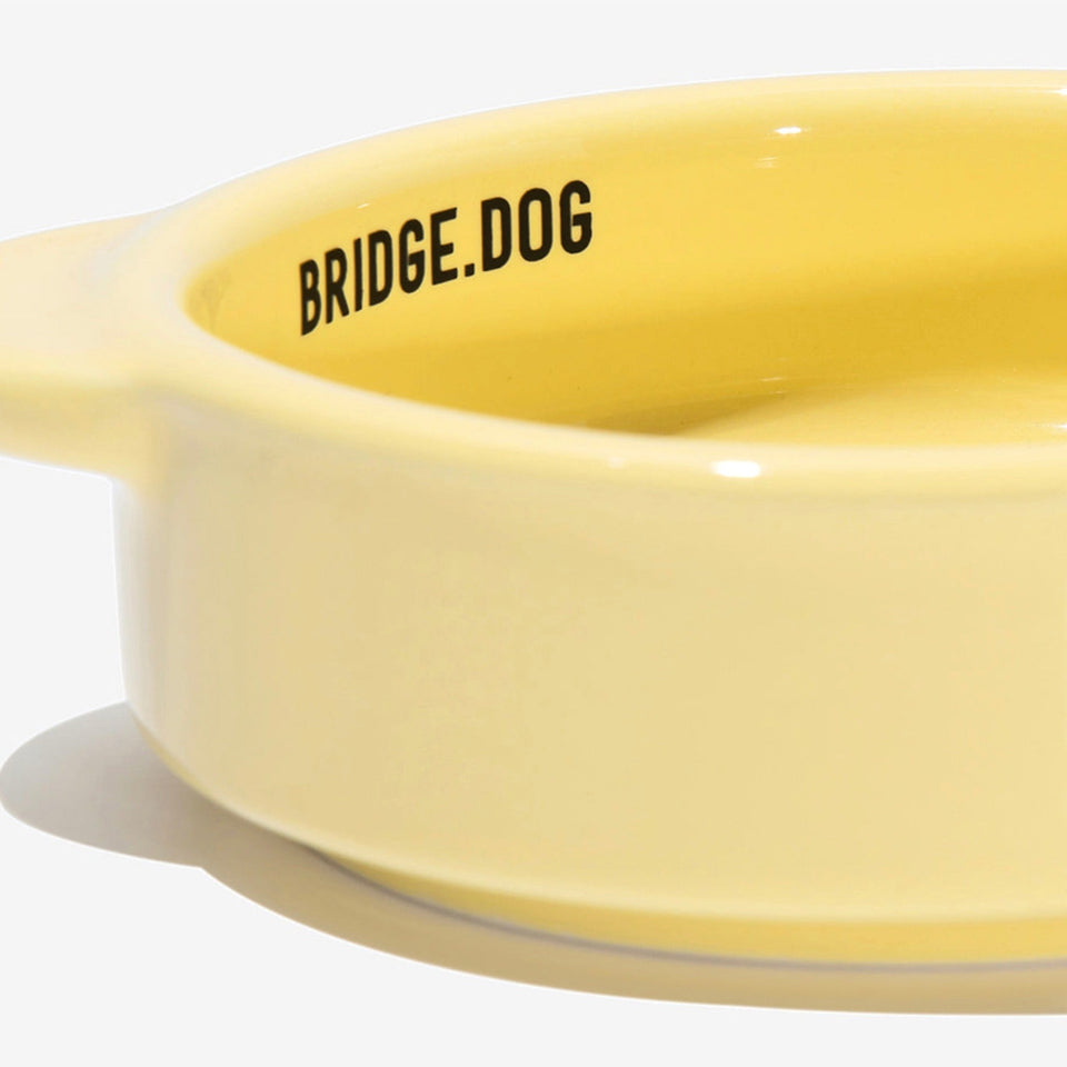 BRIDGE.DOGの陶磁器は、シンプルながら洗練された高級感のある独自のデザインと「高級白土」と「高級釉薬」を使用し、1300度の高温焼成によって3回焼かれることで有害成分がなく、わんちゃんが毎日口にするものなので"安心安全"に使っていただけます。