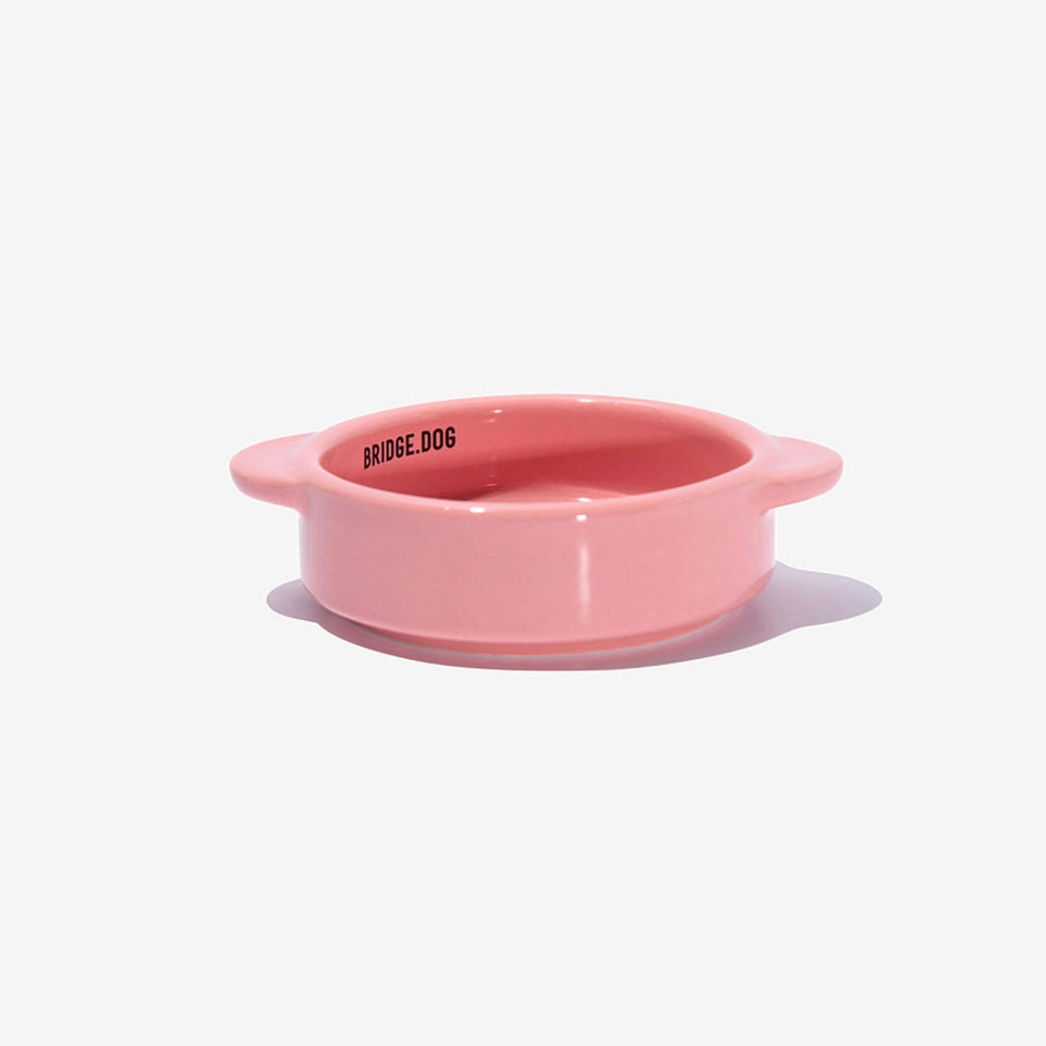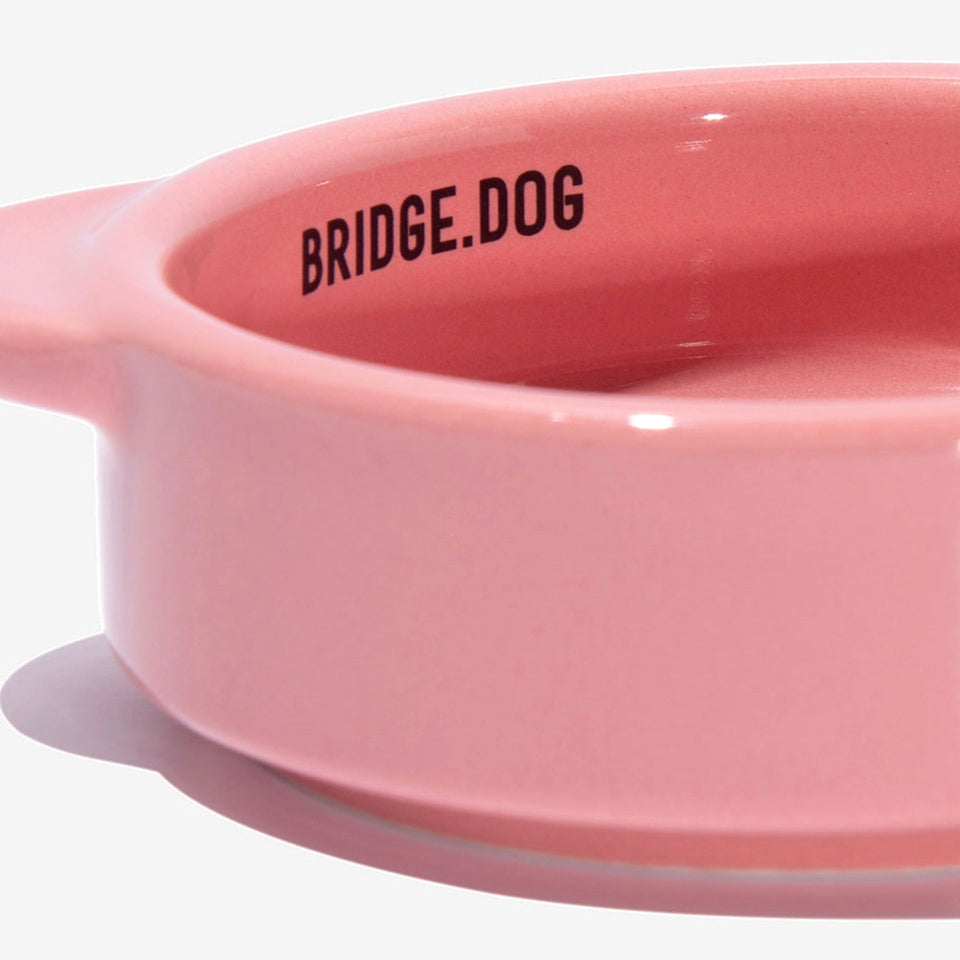 BRIDGE.DOGの陶磁器は、シンプルながら洗練された高級感のある独自のデザインと「高級白土」と「高級釉薬」を使用し、1300度の高温焼成によって3回焼かれることで有害成分がなく、わんちゃんが毎日口にするものなので"安心安全"に使っていただけます。