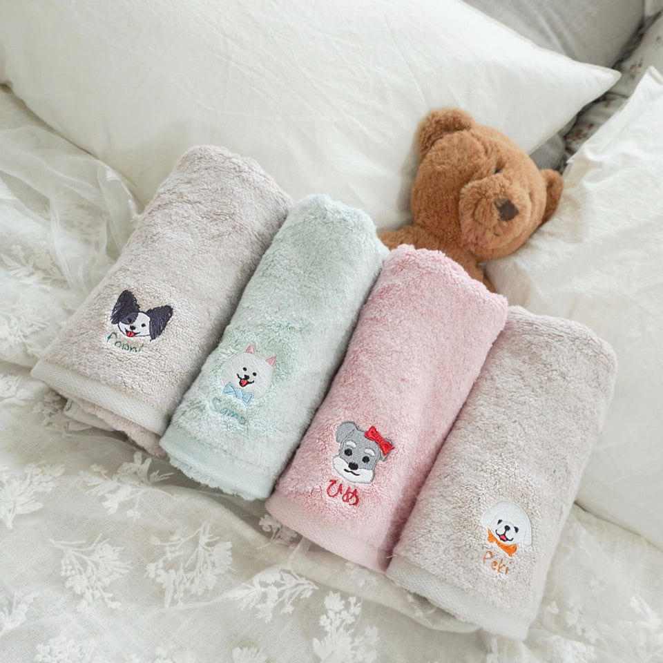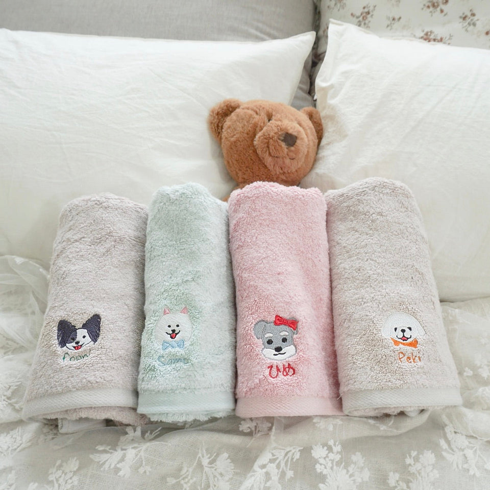 『安心の優しい肌触り!豊富なイラストから愛犬に似ている子を選んで“うちの子”だけの特別なタオルに♡』