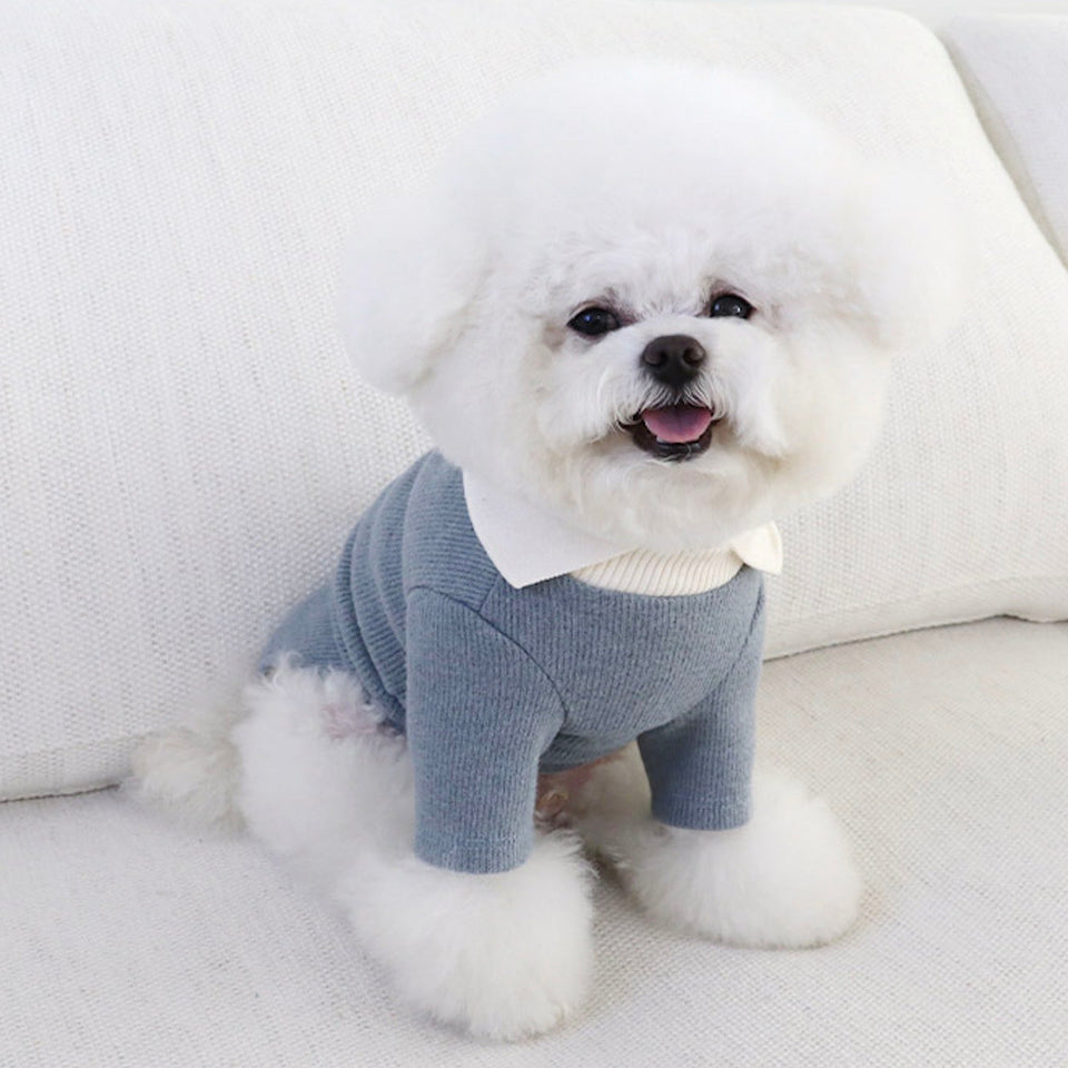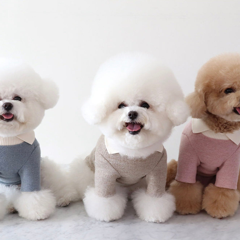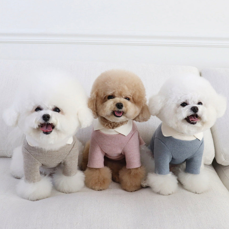 手触り良く暖かなニットボディに配色の襟がデザインのポイントに!