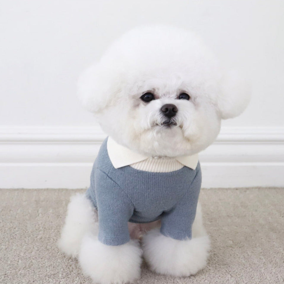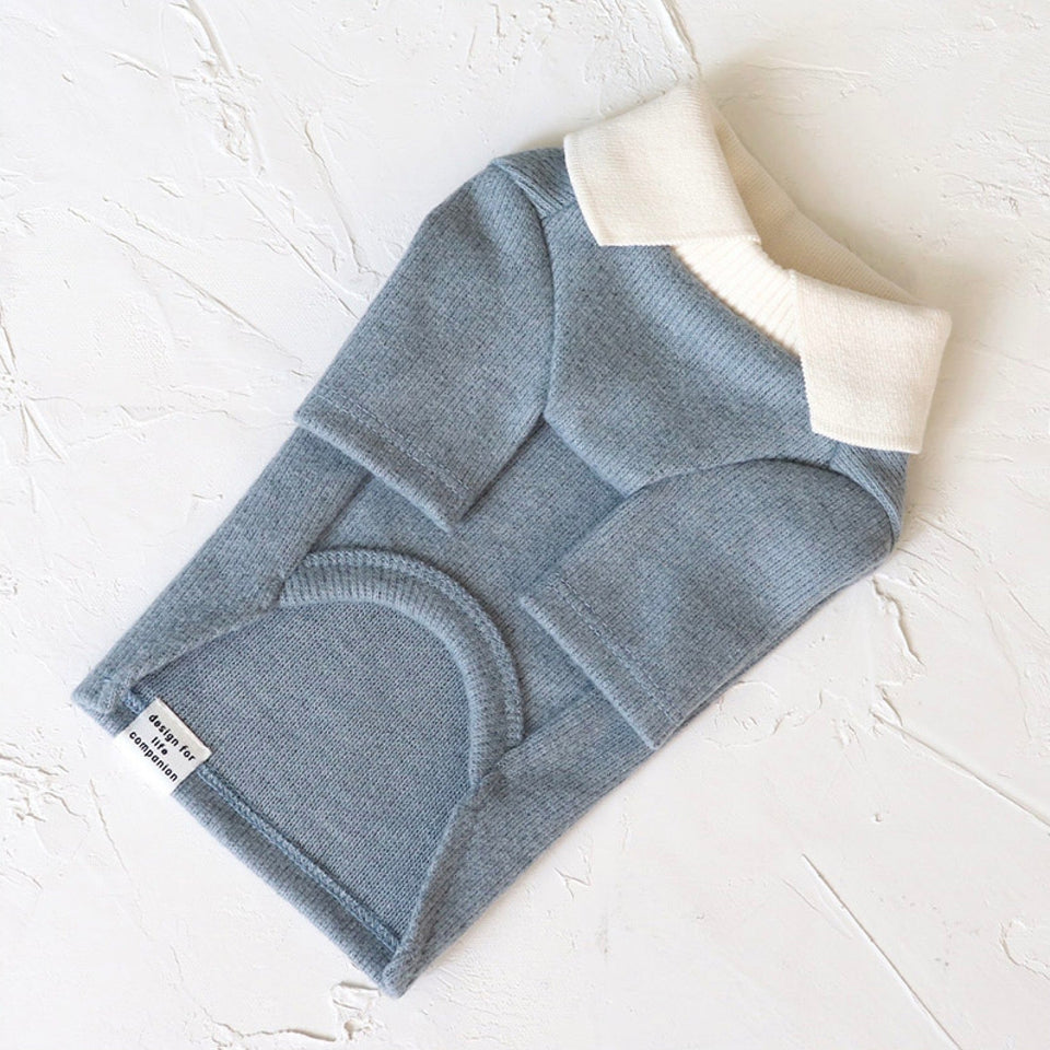 ※予約販売【Chiot】BLANC KNIT COLLAR T-SHIRT(Blue)