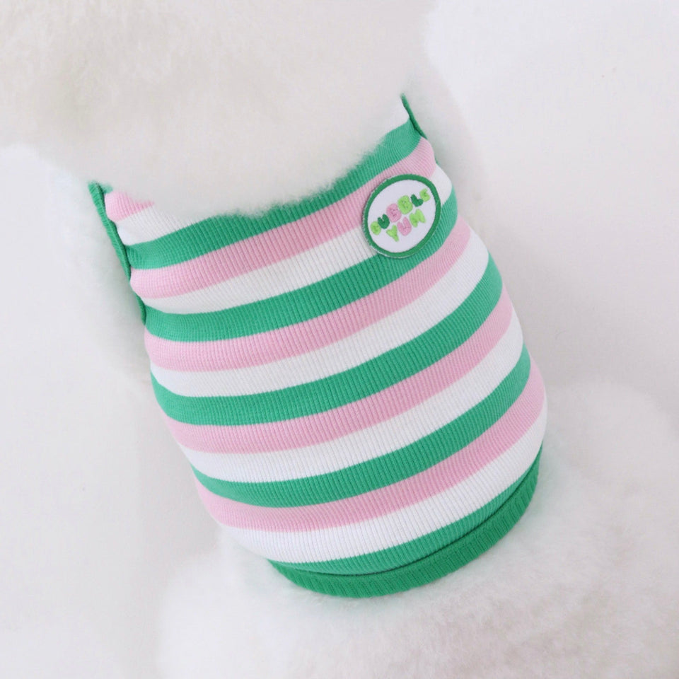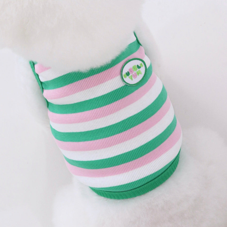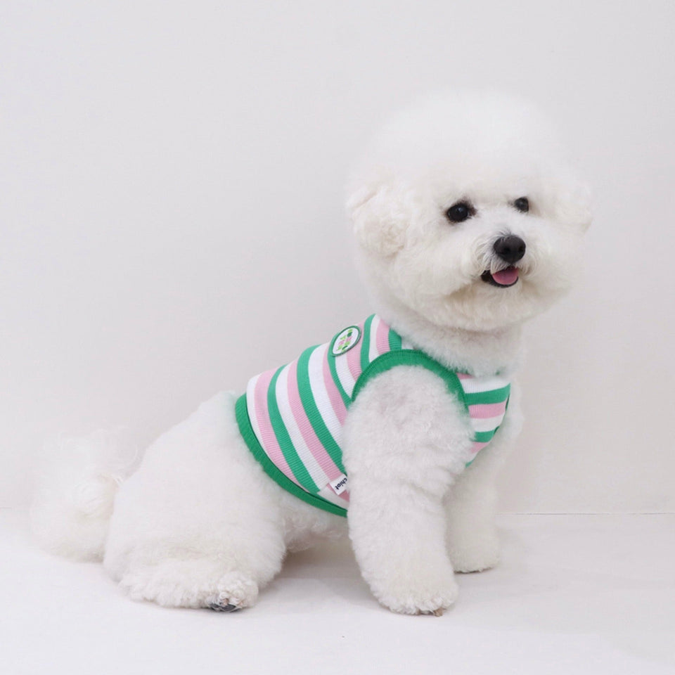 独自なカラーセンスですが、とっても爽やかな配色はいつでもどこでも快適に着用できるデイリー使いにぴったりで、元気の出るノースリトップス!