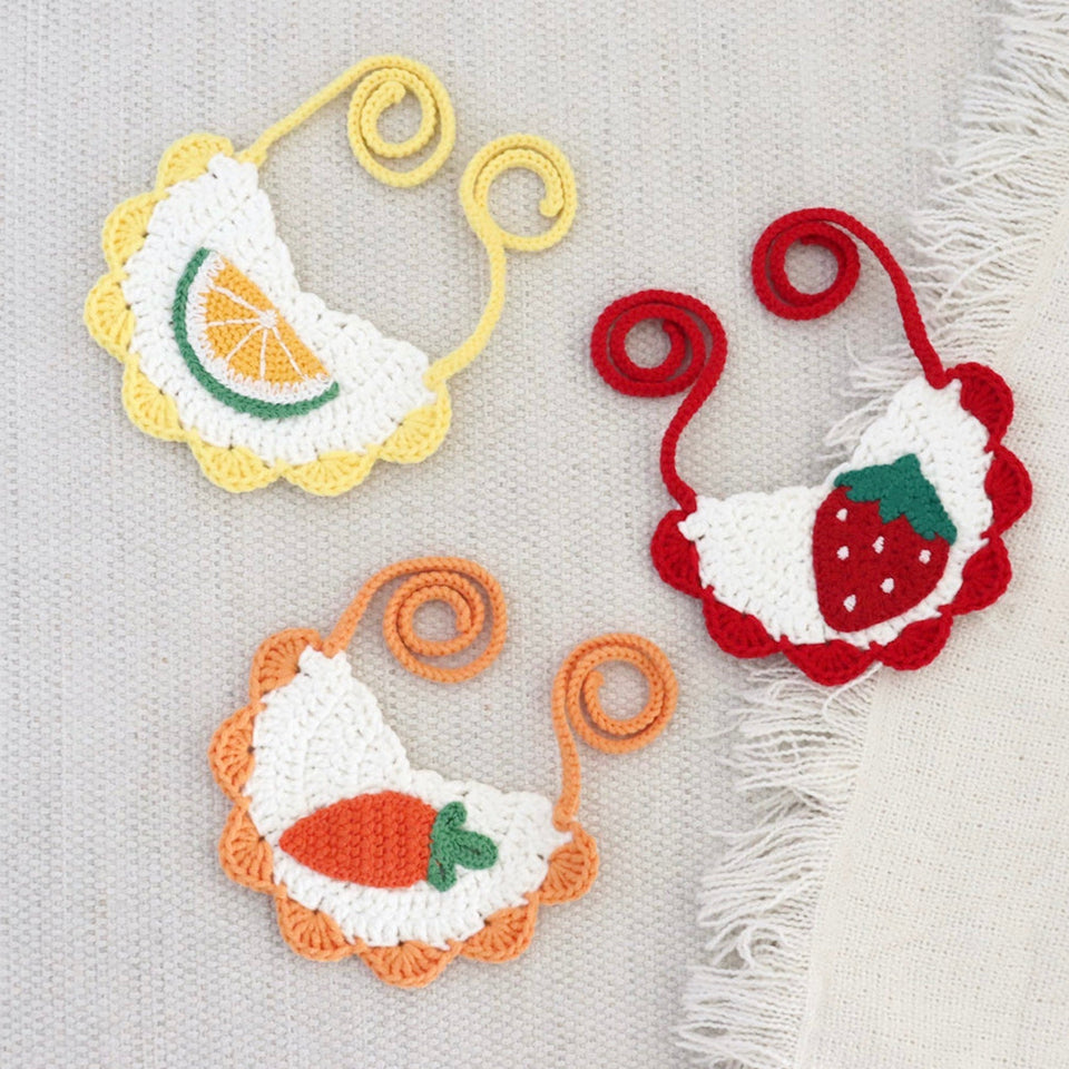 「ストロベリー」「ライム」「キャロット」の可愛らしいモチーフをニッティングで表現しており、ざっくり感と編み地がたまらなく可愛いデザインです。