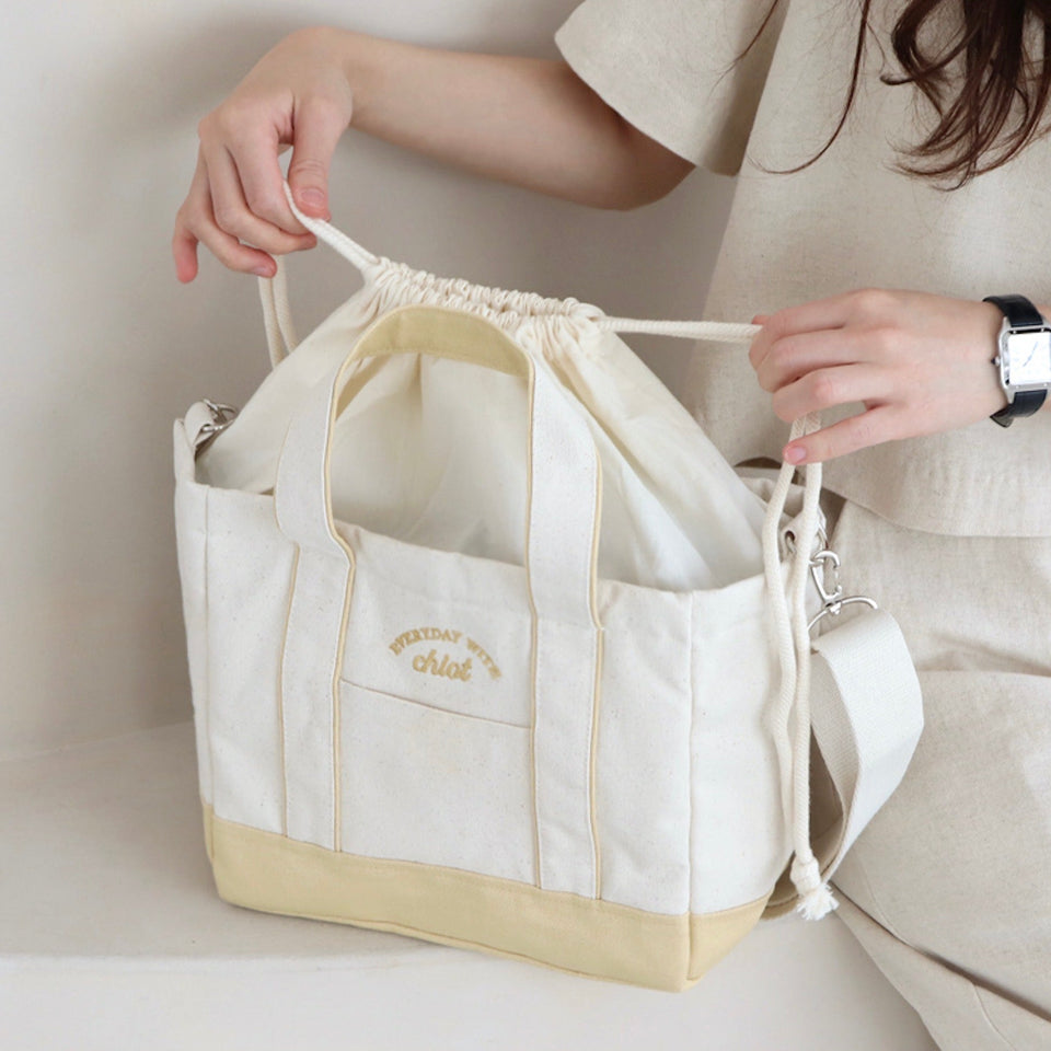 普段は巾着で上部開口部を絞って閉じるので、少し収納が多くなりすぎても余裕を持ってしまえます。