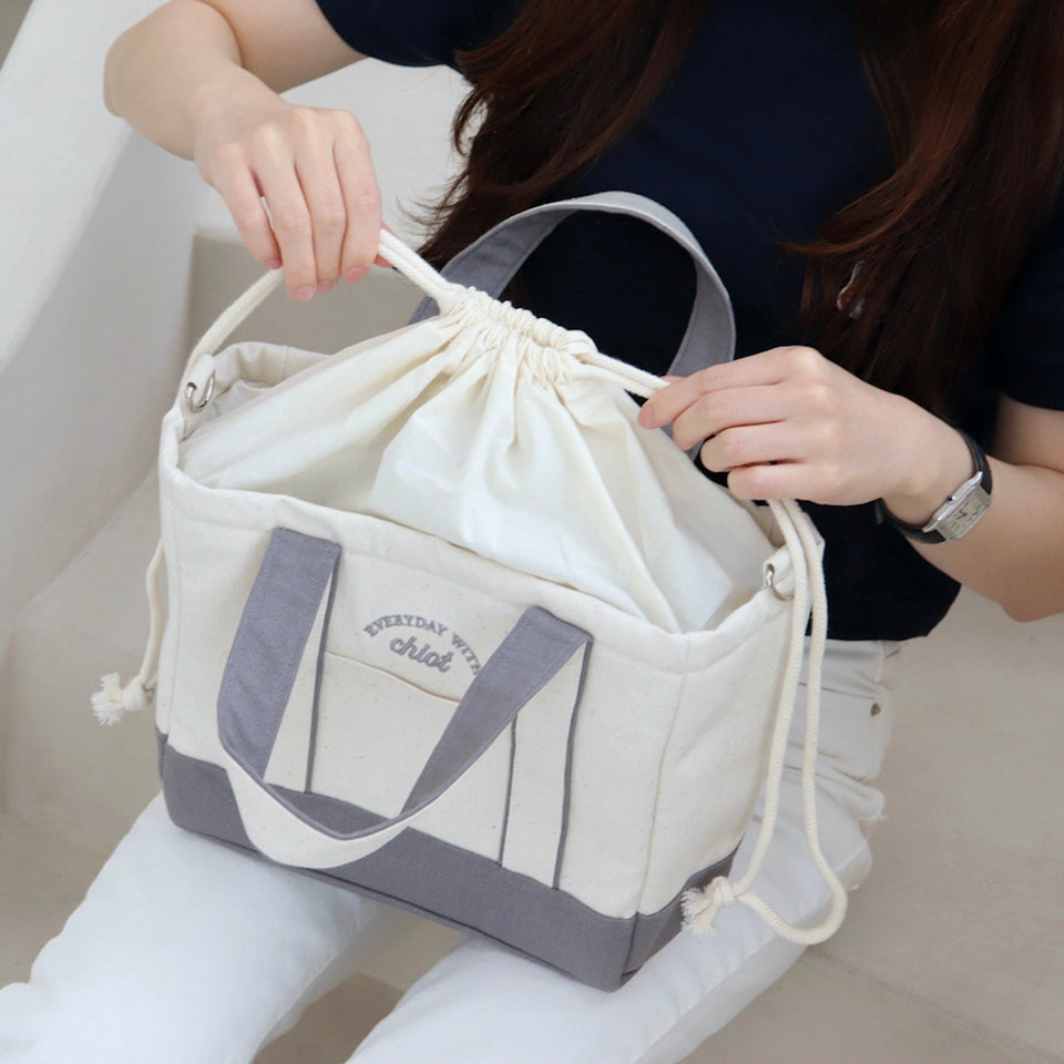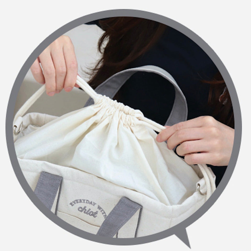 普段は巾着で上部開口部を絞って閉じるので、少し収納が多くなりすぎても余裕を持ってしまえます。
