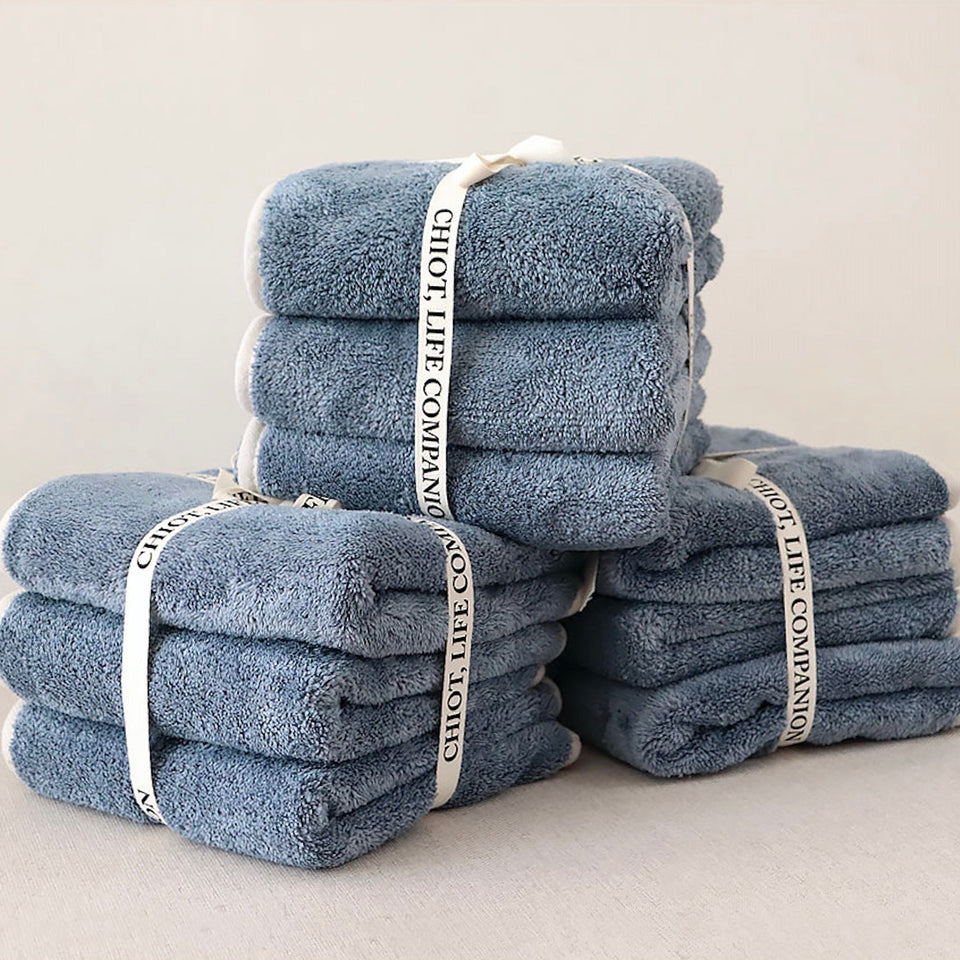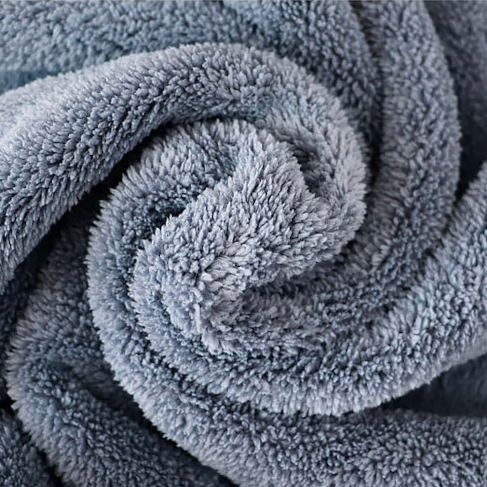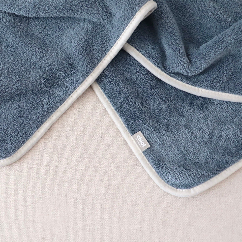 ブルーグレー×アイボリーの高級感のあるカラーリングとソフトな肌触り、そして驚くべき吸水力を誇るプレミアムタオル!