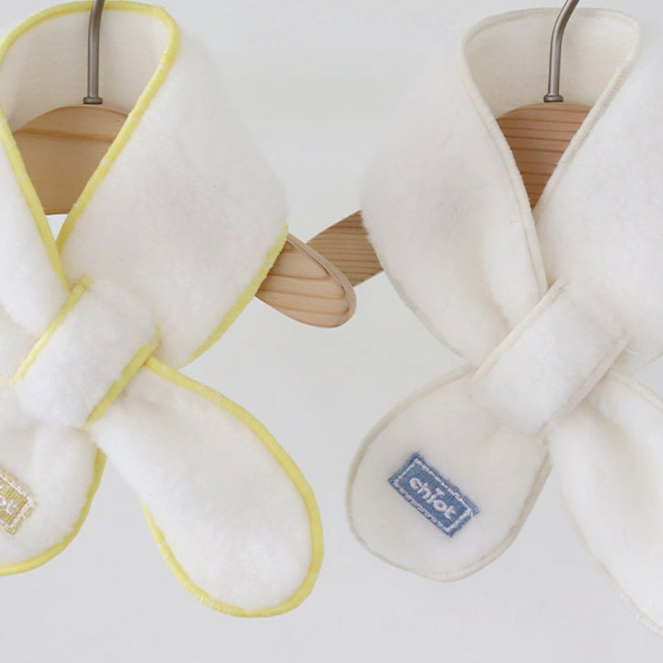 『独自開発した綿飴のようなふんわりフリースマフラー』