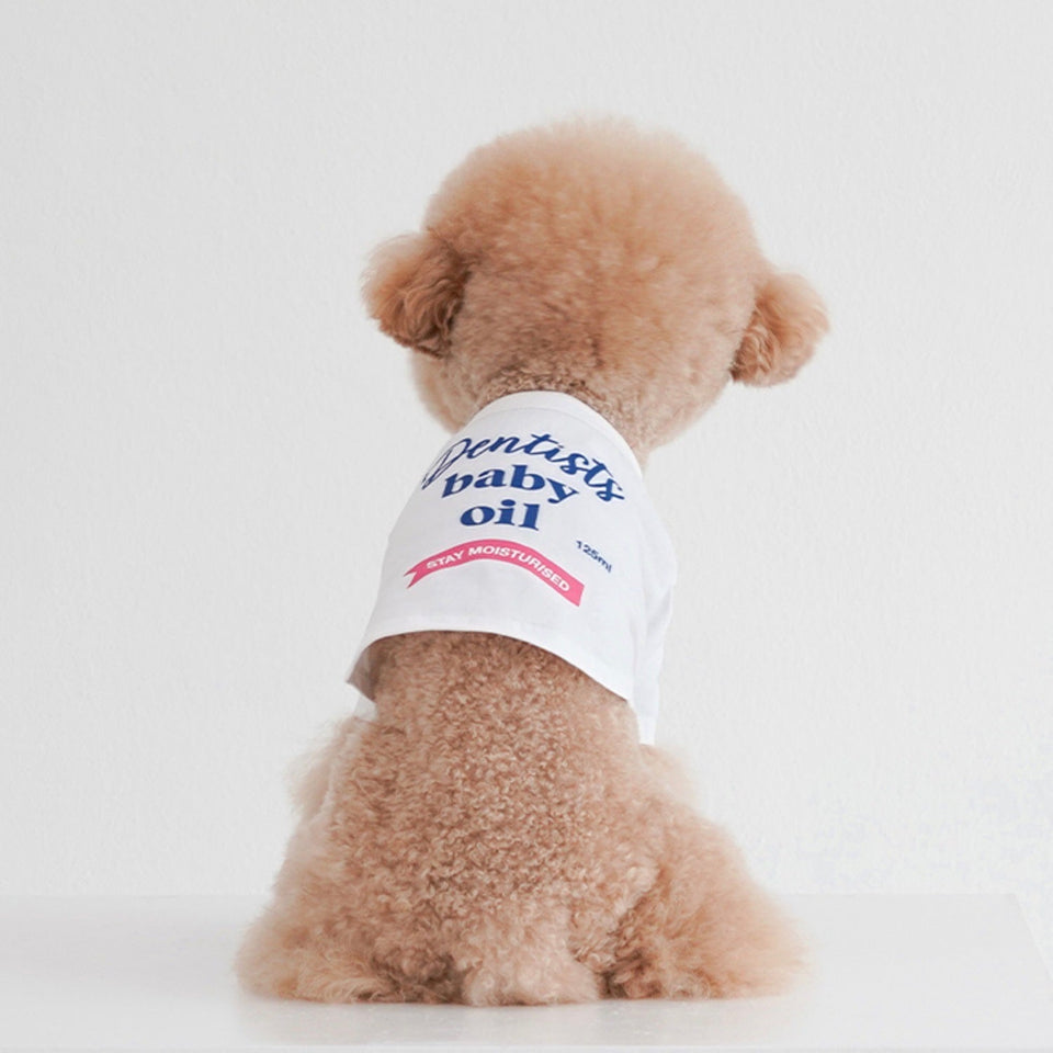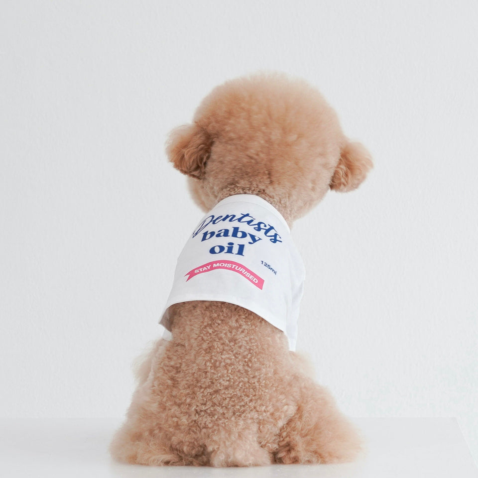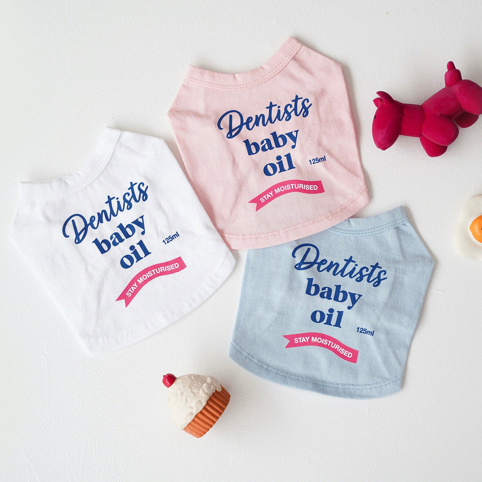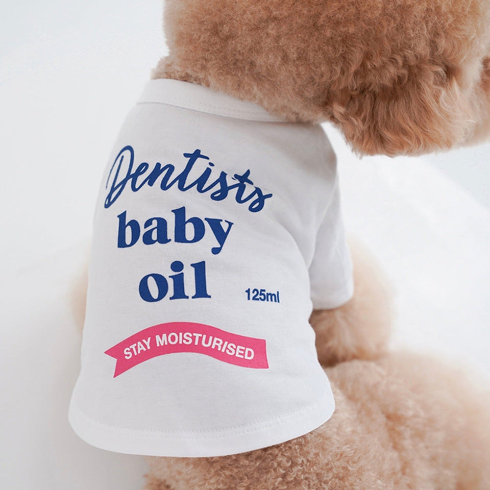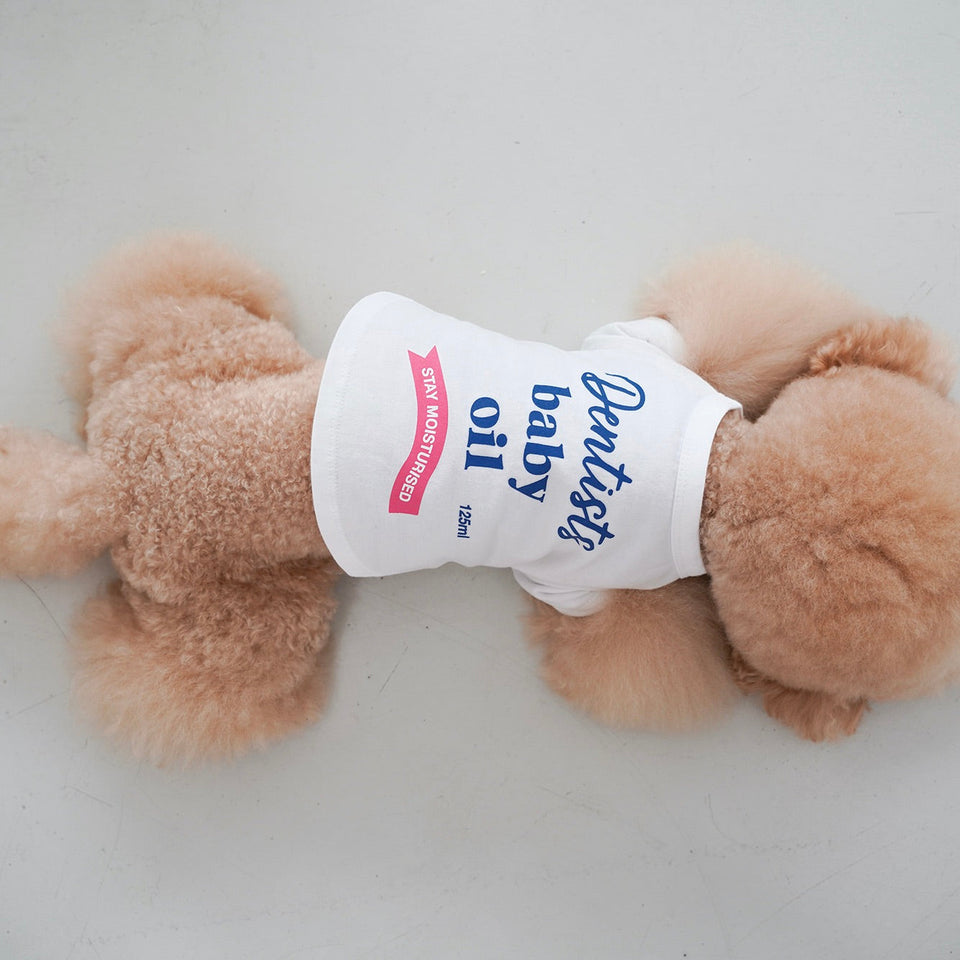 『ベビーオイルをモチーフにしたキャッチーなTシャツ』